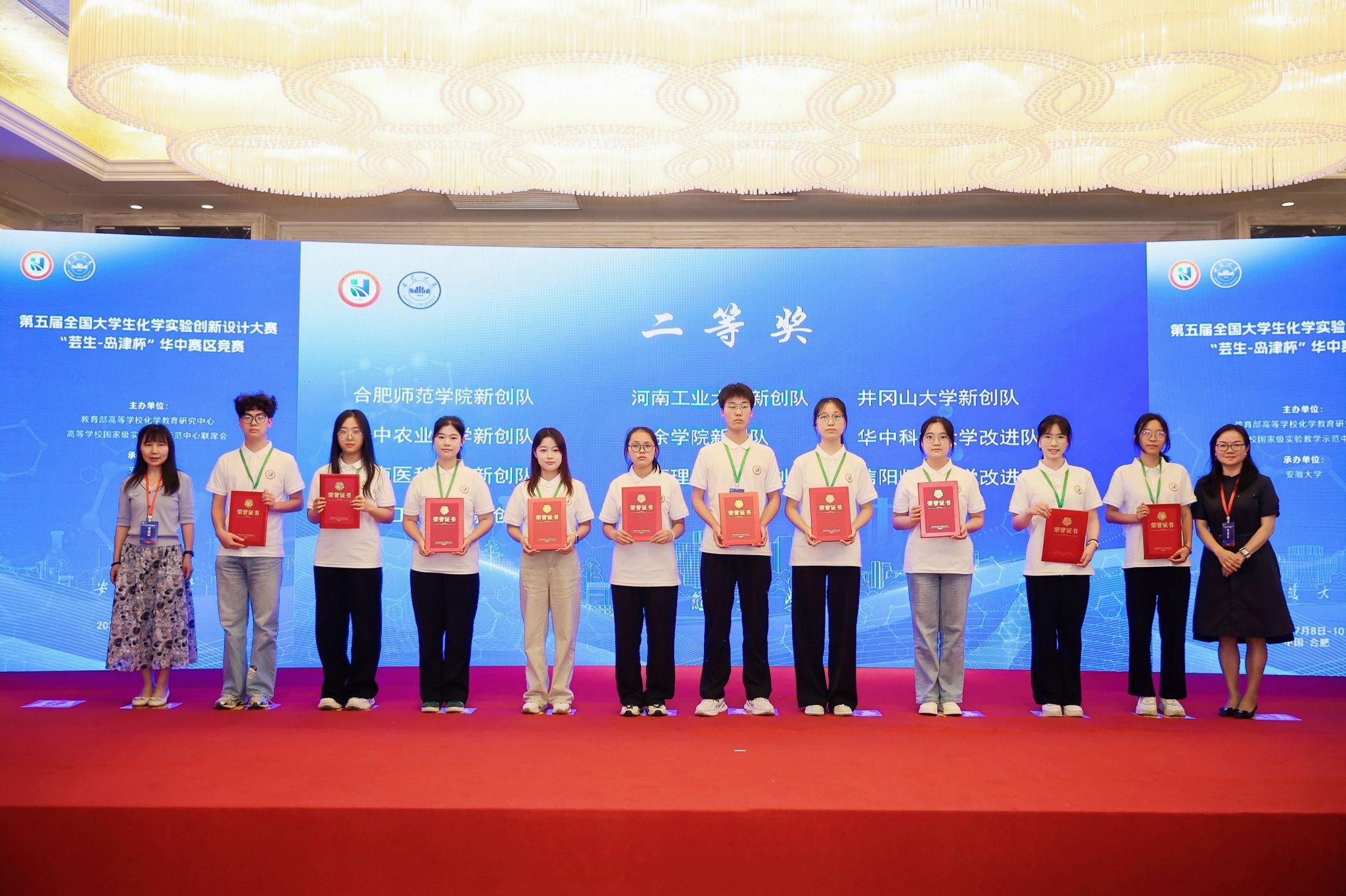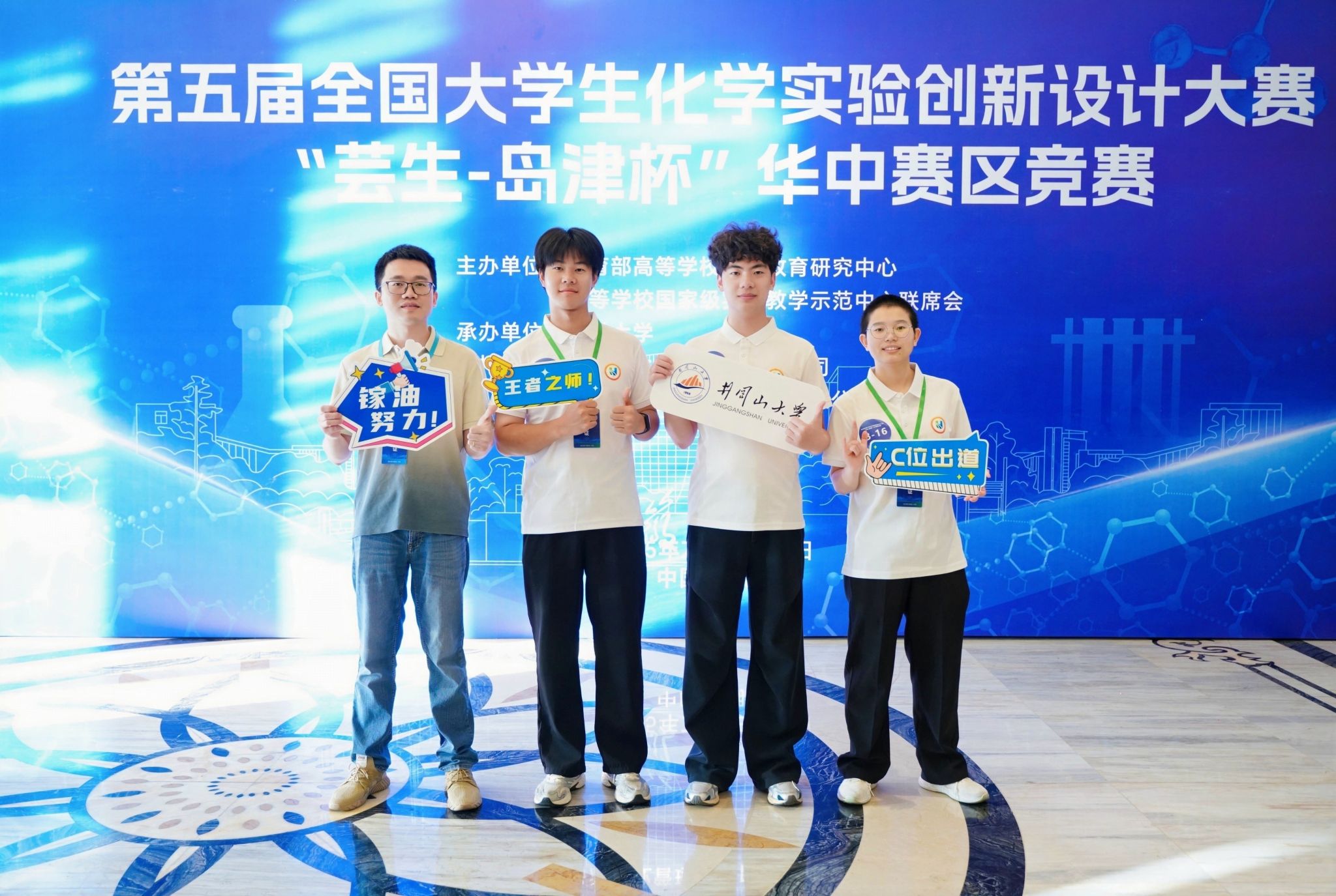 2025年7月8日至10日,第五届全国大学生化学实验创新设计大赛“芸生-岛津杯”华中赛区竞赛在安徽大学举行。本届竞赛,共有来自湖北省、河南省、安徽省和江西省的80所高等院校227支队伍700余名本科生参赛。经专家函评,109支队伍入围现场答辩。通过校内选拔,我校两支队伍推荐参加华中赛区选拔赛。其中,2023级化学专业学生李昌远、周朝志和钟若秋组成的新创实验队在邓霏、易绣光老师的指导下入围华中赛区竞赛现场答辩,经过激烈角逐,荣获华中赛区竞赛二等奖。