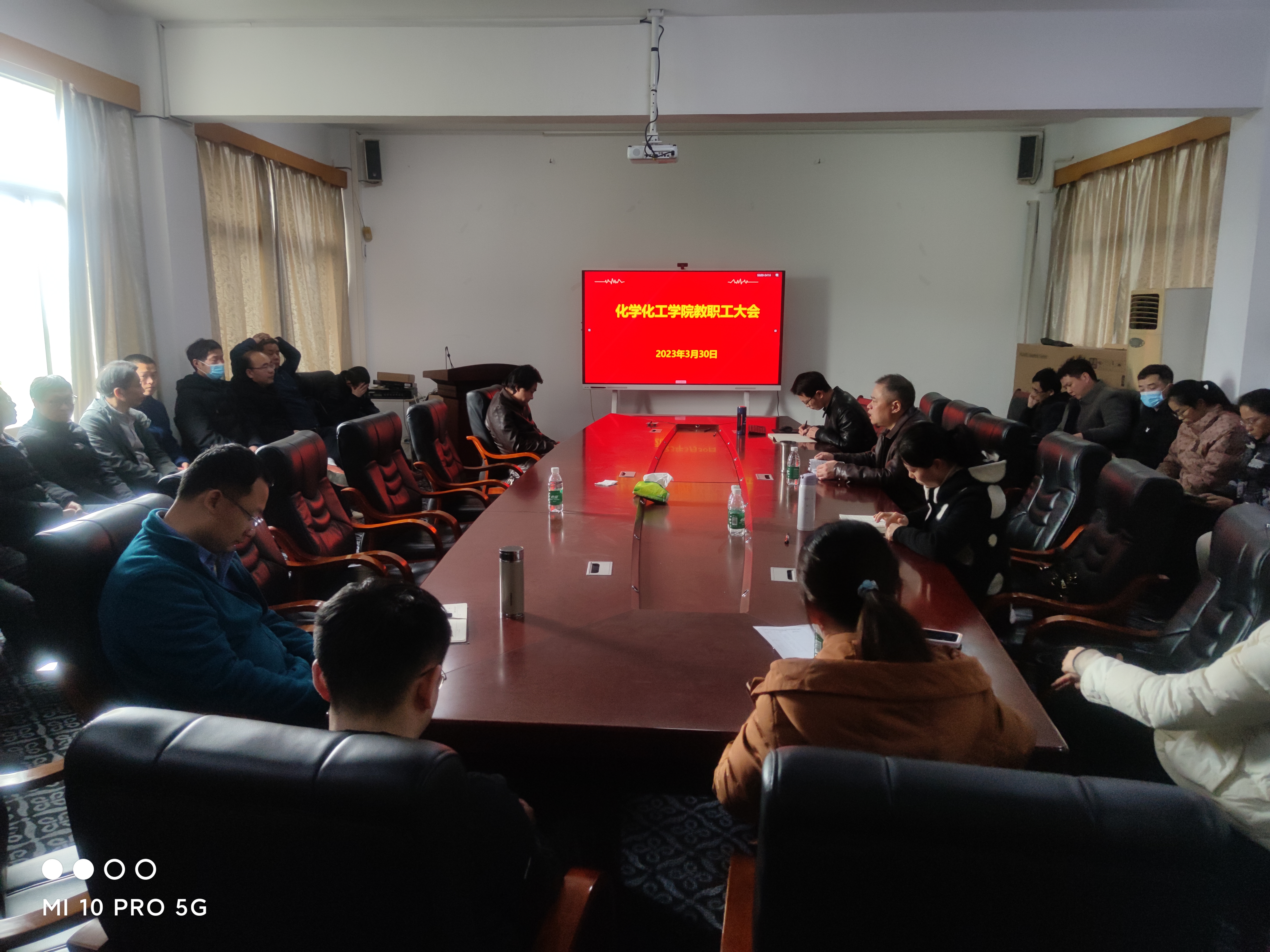 陈文通通报了截至目前2023年度综合考核目标任务完成情况,对近期要进行的项目和平台申报、科研与学科、服务社会、研究生招生复试工作、师资队伍建设等重点工作进行了系统梳理和总结,对下一步工作进行了细致地规划和安排;对4月即将召开的晶态材料化学前沿论坛筹备工作进行了详细的任务部署。