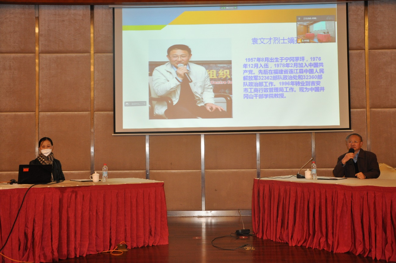 为深入学习贯彻党的二十大精神,提高党员的政治素质和理论修养,增强党支部的创造力、凝聚力和战斗力,我院党委与宁夏大学化学化工学院党委、浙江工业大学材料科学与工程学院党委、青原区河东街道梅苑社区党支部四个单位的党员在云端开展“学习二十大·建功新时代”党建联合红色研学线上活动,共同参与“寻路--真情在线”红军后代教学访谈活动,与井冈山红军曾志、袁文才、王佐的后代进行线上交流互动,共同感受老一辈无产阶级革命家的博大胸怀和感人事迹。教学访谈结束后,我院党委书记康云峰和宁夏大学化学化工学院党委书记高继明分别作了党的二十大精神宣讲,其他师生代表就学习党的二十大精神心得体会、支部建设经验和特色工作等进行了交流分享,共话理想初心,激扬奋斗精神。