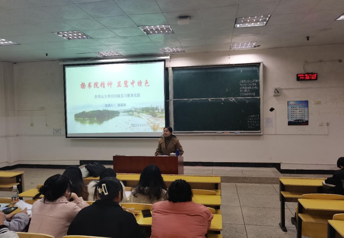 为了帮助师范生更加顺利地从学生到化学教师的角色转化,增强师范生从事教育工作的意愿,认同教师工作的意义和专业性,我院组织2020级本科生于12月11日下午在5栋104开展师范生教育见习系列活动第一场活动。本次活动邀请了吉安市白鹭洲中学化学高级教师陈春林为同学们带来以“扬书院精神 显鹭中特色”为主题的精彩讲座。