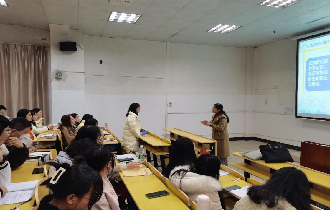 讲座上,陈春林老师首先向同学们介绍了白鹭洲中学的办学历史、文化底蕴、办学理念、办学现状、办学特色等情况。紧接着,她结合自身的求学经历与参加工作后成长为一名优秀教师的发展历程,详细阐述了她是如何从一名师范生到一名合格教师再到一名优秀教师蜕变历程,强调了这样一种变化源于对教学的热爱,对专业的执着,对学生满怀的关心关爱。与此同时,她还用大量案例分享了成为一名人民教师所拥有的幸福感、获得感与自豪感,极大地增强了同学们对教师职业认同,深化了同学们的教育情怀。最后,陈春林老师从教师职业态度、教学基本规范要求、对化学教学有效性探索、新教师的心理成长等四个方面向同学们详细阐述了作为一名一线教师应如何对待教学工作,如何做好教学准备工作,如何实施教学工作及如何开展有效教学与教研工作,为同学们接下来的实习工作做了非常精确、专业和有效的指导。