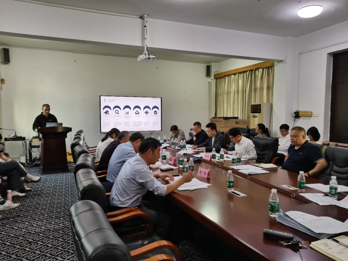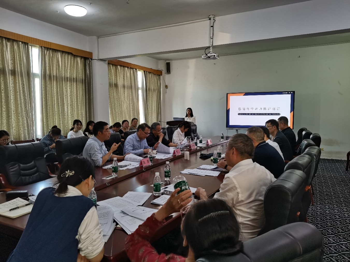 会上,刘诚首先对来自基础教育行政部门和中学的一线教学专家表示热烈欢迎和衷心感谢,并简要介绍了学生的毕业论文选题情况,说明了此次会议的目的和安排。接着,学生通过PPT作开题报告,分别从选题背景、研究目的与意义、国内外研究现状和发展趋势、研究内容、进度安排、研究方法与思路等方面进行了详细汇报。与会专家和全体指导老师围绕学生开题报告中存在的问题与学生进行了充分交流,重点结合学生的毕业论文选题和研究内容两个方面提出了中肯的意见和建议。