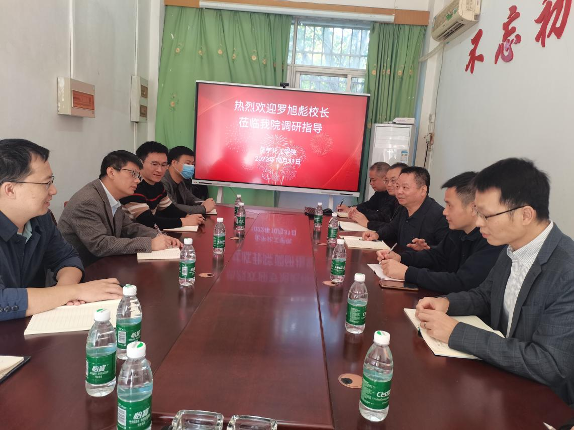 罗旭彪详细听取了学院的工作汇报,并和与会人员进行了深入交流。他对我院取得的工作成绩给予了充分肯定。他指出,化学化工学院党政班子团结有力,发展信心饱满,洋溢着奋斗者的朝气,学院发展目标明确、发展定位准确、工作思路清晰,也能找准并积极应对存在的短板和问题。