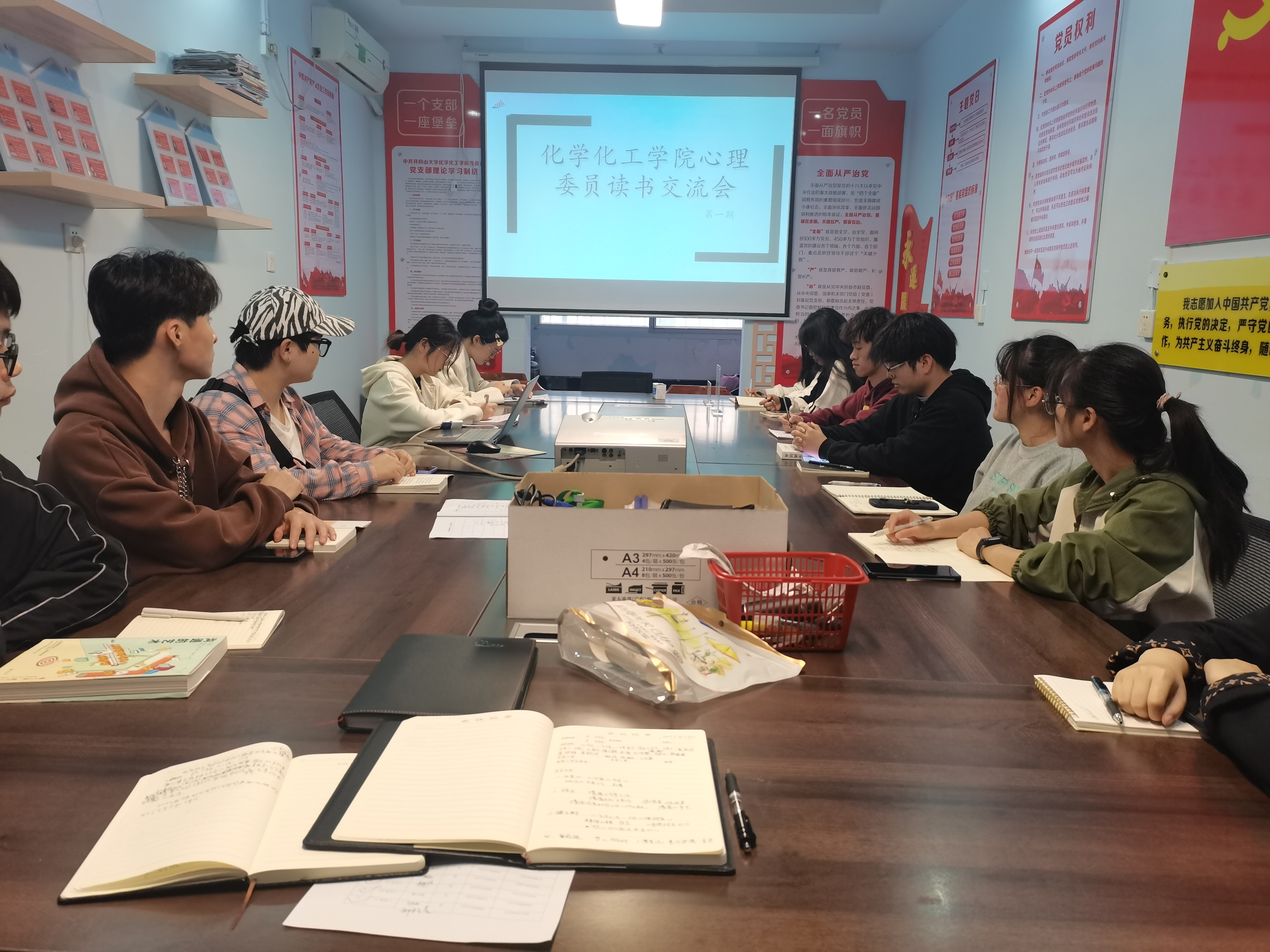 本次“心理读书会”展示交流活动中,四位优秀的心理委员进行了读书成果展示汇报。21化学1班的田笔山同学汇报的是《沟通的艺术》、21化学2班滕立鹤汇报的是《乌合之众-大众心理研究》、20化工1班王家乐汇报的是《情绪调节方法》、22化学1班巢毅斌汇报的是《梦的解析》,大家在汇报展示中都能够结合自己的学习和平时的班级工作谈自己的感受,既表达了自己对所读书籍的理解,同时也结合自己组织开展的相关班级心理工作进行了个人经验分享。学院心理导师黄满琴老师认真听取每个成果展示,并逐一进行了点评,黄老师指出心理委员作为学院心理工作奋斗在“第一线”的同学,需要多一些相关知识储备,以此来更好地发挥心理委员“助人者”的作用,与会同学开展了热烈的交流研讨。