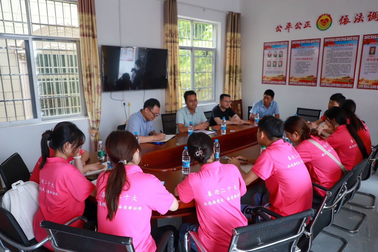 为了引导和帮助广大青年学生上好与社会相结合的“大思政课”,在社会课堂中“受教育、长才干、作贡献”,坚定信念听党话、跟党走,我院“扶贫济困爱同行 青春向党立新功”大学生暑期社会实践团于2022年6月25日走进江西省永丰县洋陂坑村,深入调研脱贫攻坚成果,为群众普及党史知识和国家政策法规,开展防范电信诈骗宣讲等活动,材料化学专业党支部还与洋陂坑村党支部开展党建工作座谈交流。