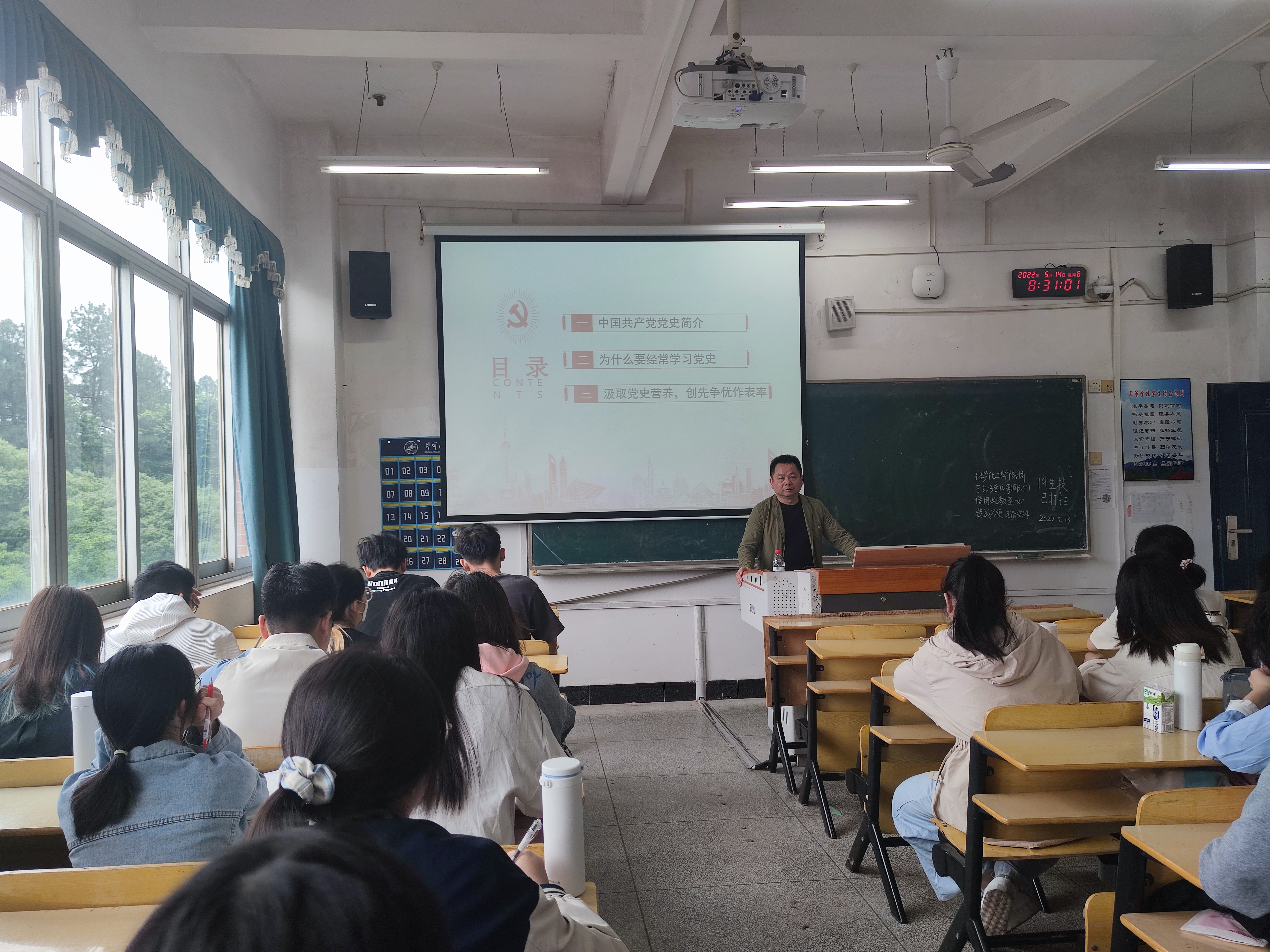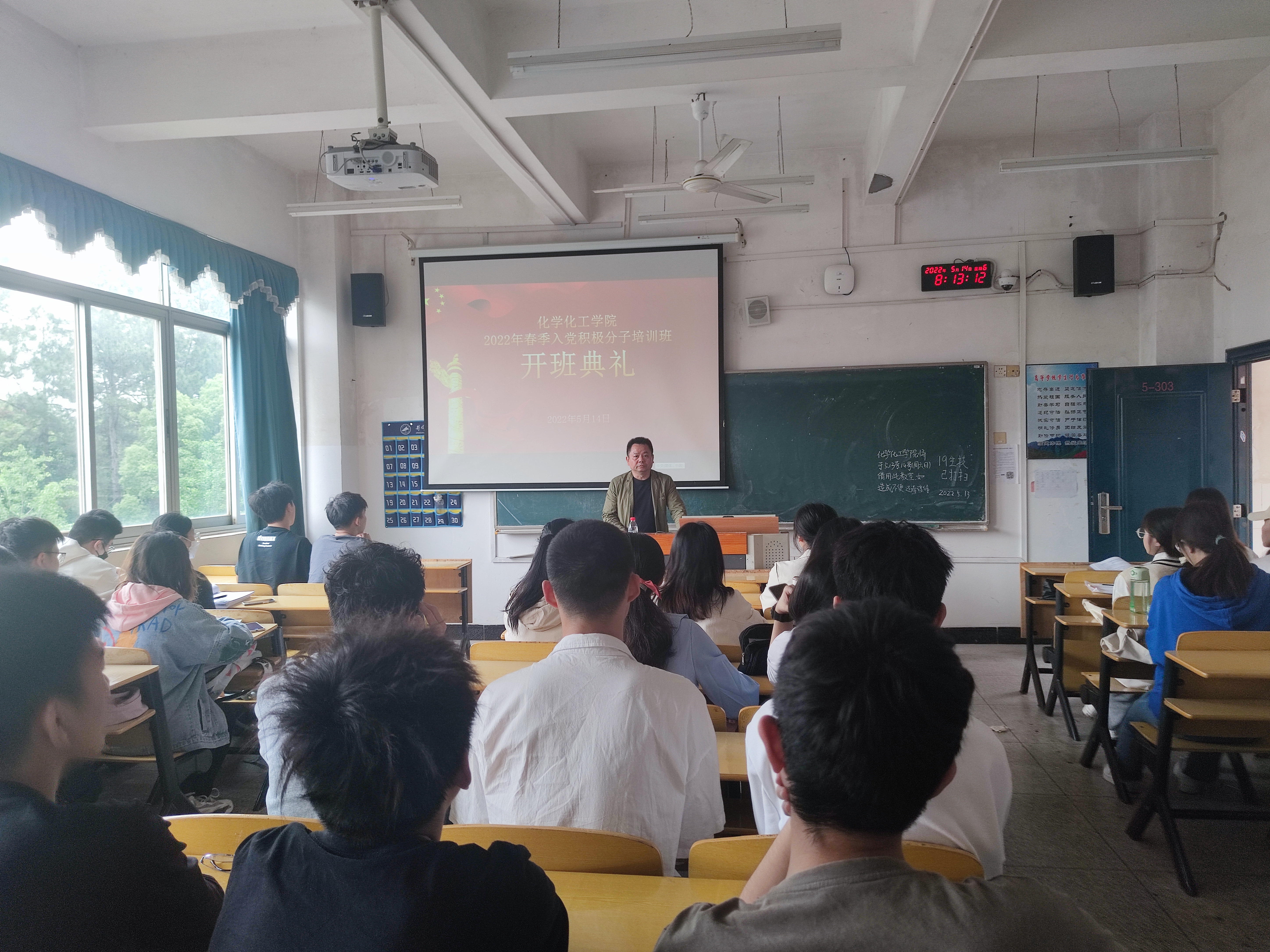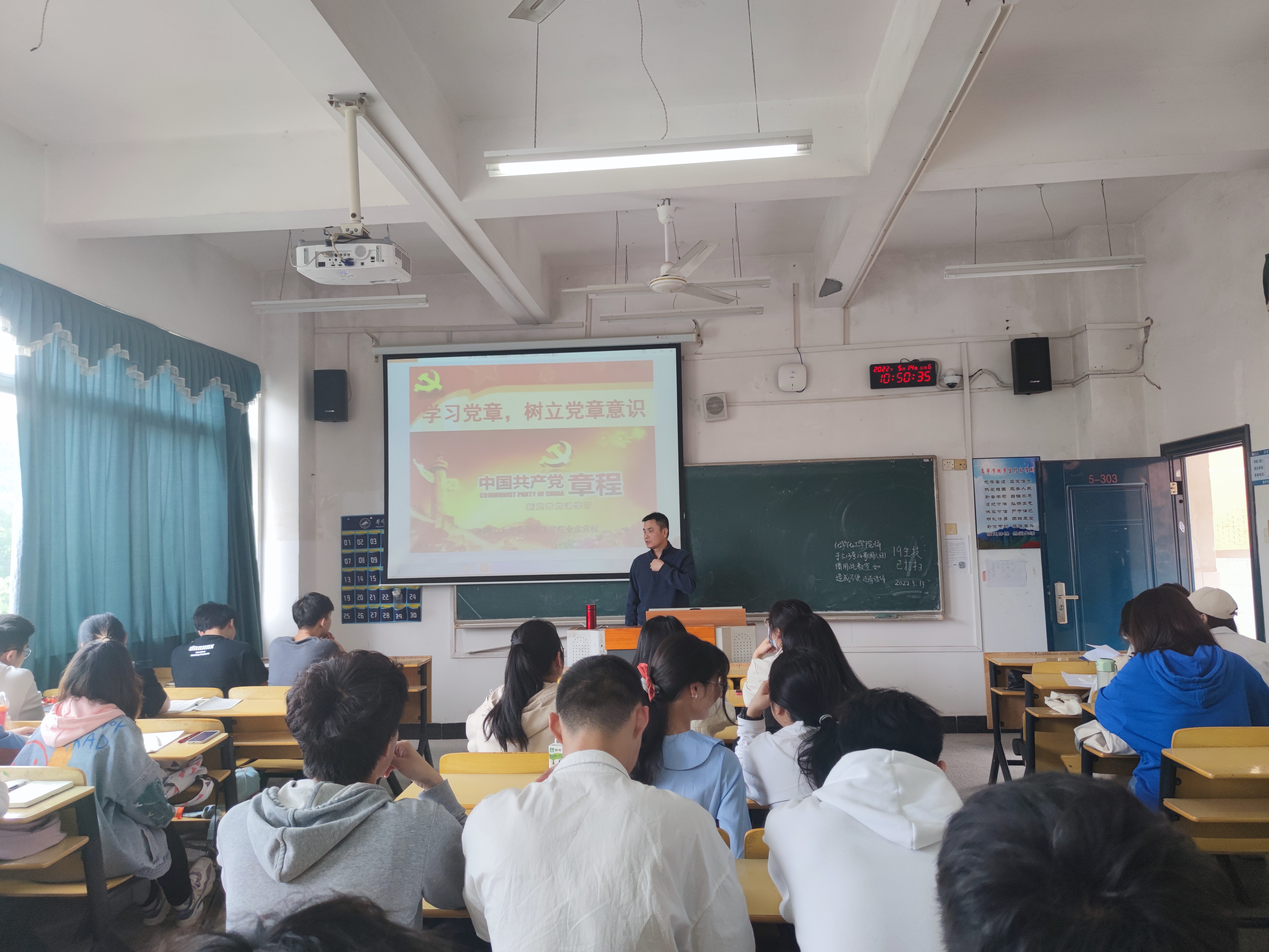 为切实提高入党积极分子的思想政治素质和理论水平,强化入党积极分子对党章党规和党的基本路线、方针、政策等党的基本理论知识、党员发展程序和党的光辉历程的学习理解,进一步端正入党动机,提高思想政治觉悟,自觉接受党组织的培养、教育和考察,以实际行动创造条件争取早日入党,我院党委于5月14日-5月15日于5栋303教室对2022年春季入党积极分子开展集中授课。