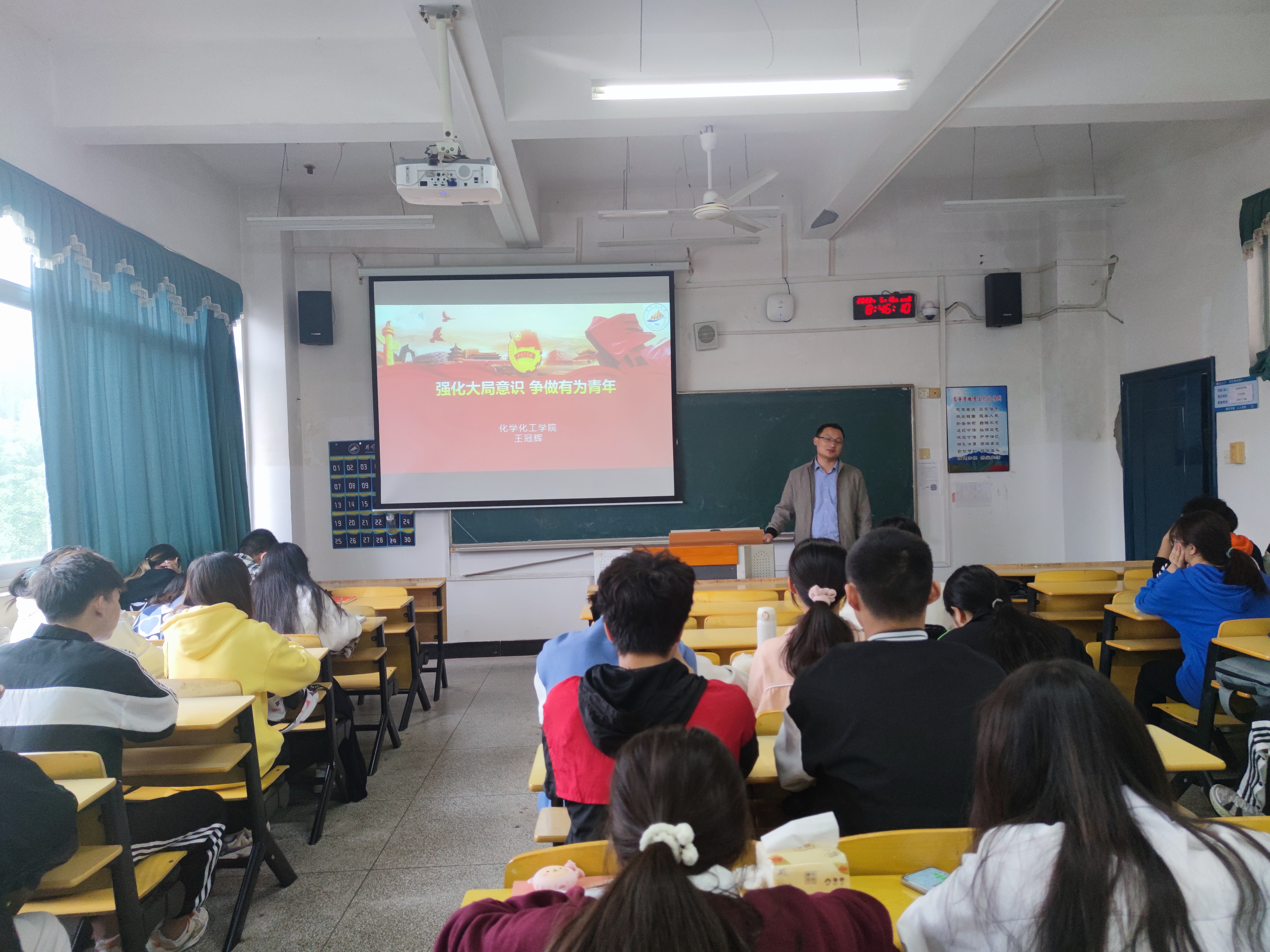开班仪式结束后,康云峰为入党积极分子讲授以“学史明责勇担当,创先争优作表率”为主题的党课。康云峰从中国共产党史简介、为什么要经常性学习党史、如何从党史中汲取营养创先争优作表率等三个方面进行了讲解,鼓励同学们要认真学习贯彻习近平总书记关于开展党史学习教育的重要讲话精神,做到学史增信,从党史中汲取“四个自信”的力量;学史明理,从党史中汲取家国情怀的营养;学史崇德,从党史中汲取知行合一的营养;学史力行,从党史中汲取敢于担当的营养,端正入党思想动机,以优秀的思想品德、优异的学习成绩、优良的行动表现争取早日加入党组织。