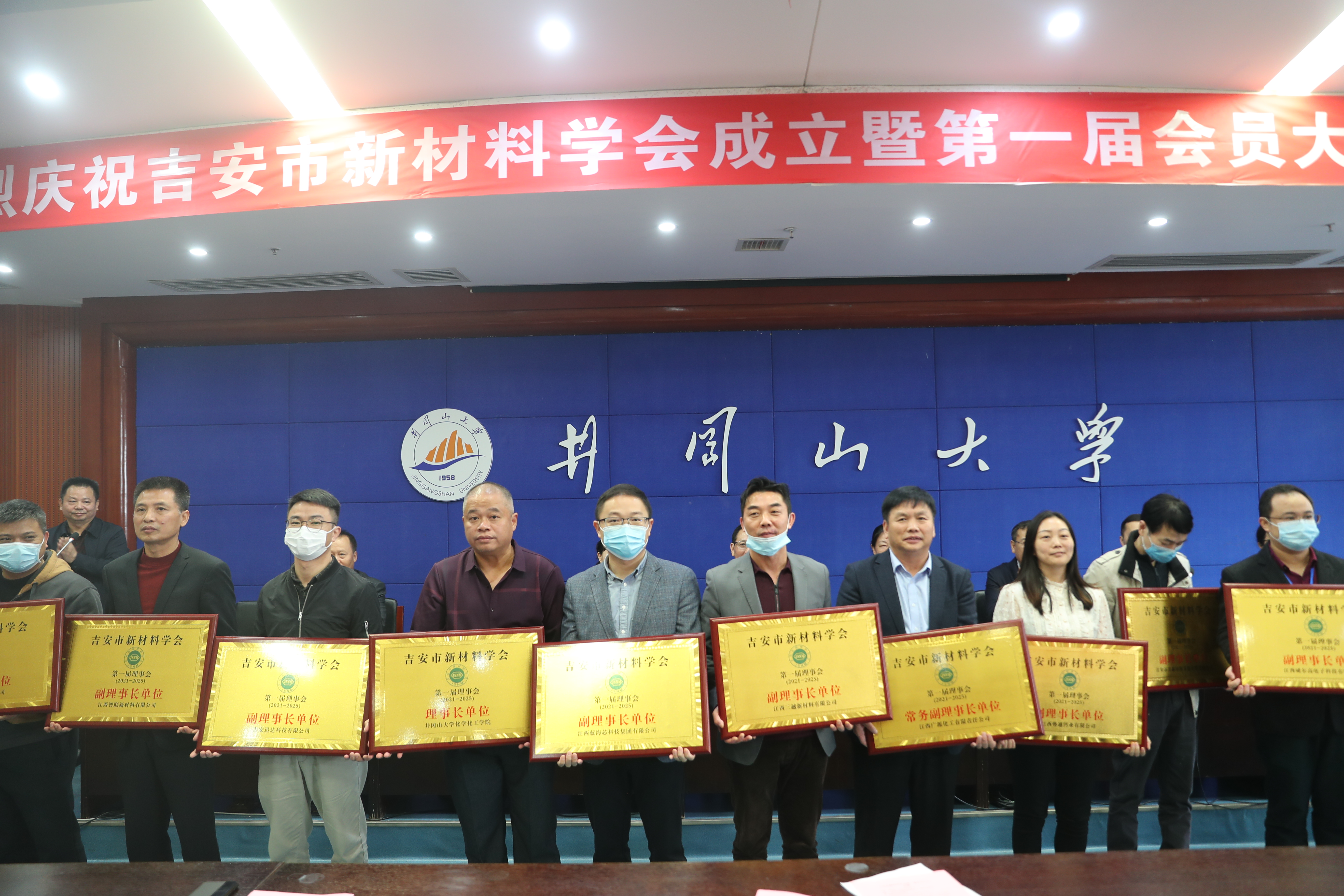会议审议通过了《吉安市新材料学会章程(草案)》等管理制度,选举产生了22位吉安市新材料学会第一届理事会理事,并推选我院隋岩教授为吉安市新材料学会第一届理事长,刘诚博士为学会秘书长。会上,朱晓东和胡春晓为新材料学会揭牌,与会领导为17家理事单位和个人颁发牌匾和证书。