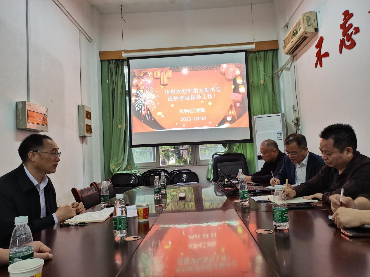 2021年10月14日上午,学校党委副书记刘祖文在校办副主任张斌的陪同下来到我院调研指导。调研座谈会由学院党委书记康云峰主持,学院党政班子成员、学管干部、党支部书记参加。