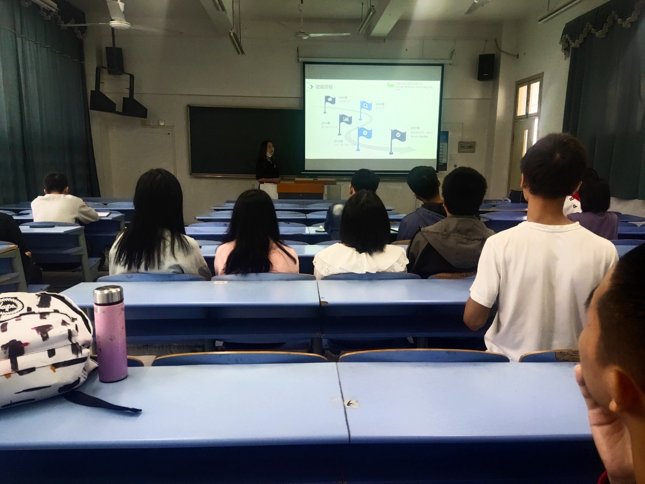 10月15日江西红板科技股份有限公司钱经理一行来我院举办专场招聘会。钱经理让同学们观看了公司的宣传片,向大家展示了员工工作环境、福利待遇以及招聘岗位,并就员工的其他相关事宜进行了详细的说明,最后就同学们提出的问题进行了交流。