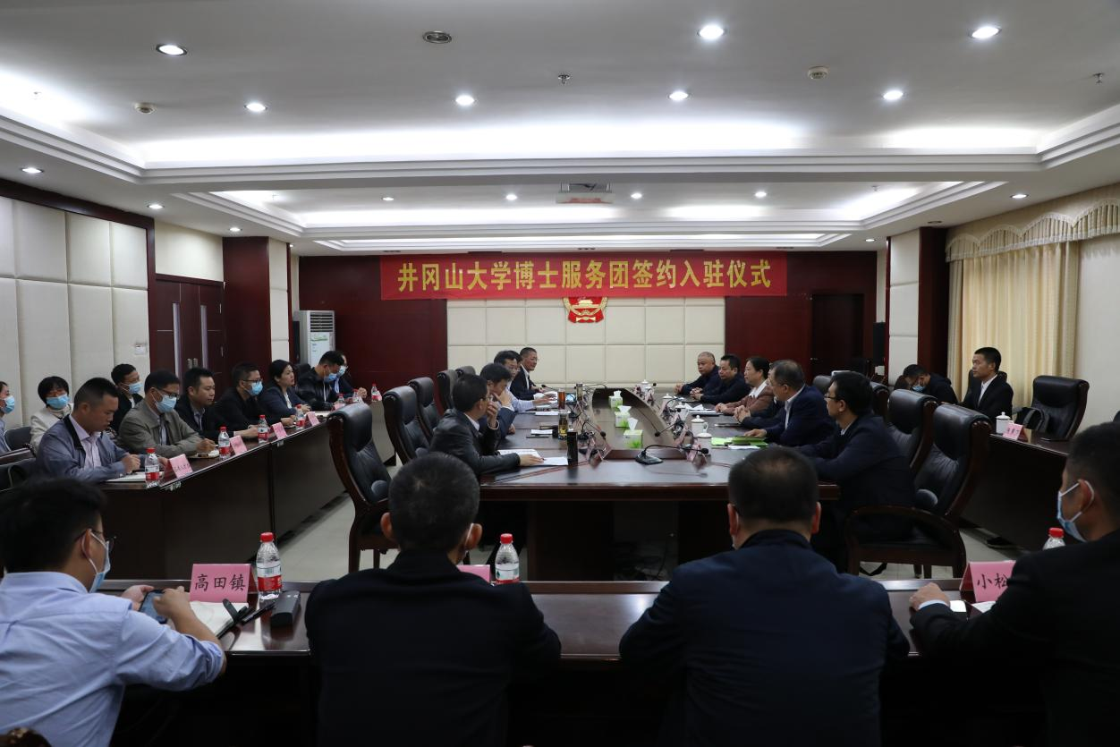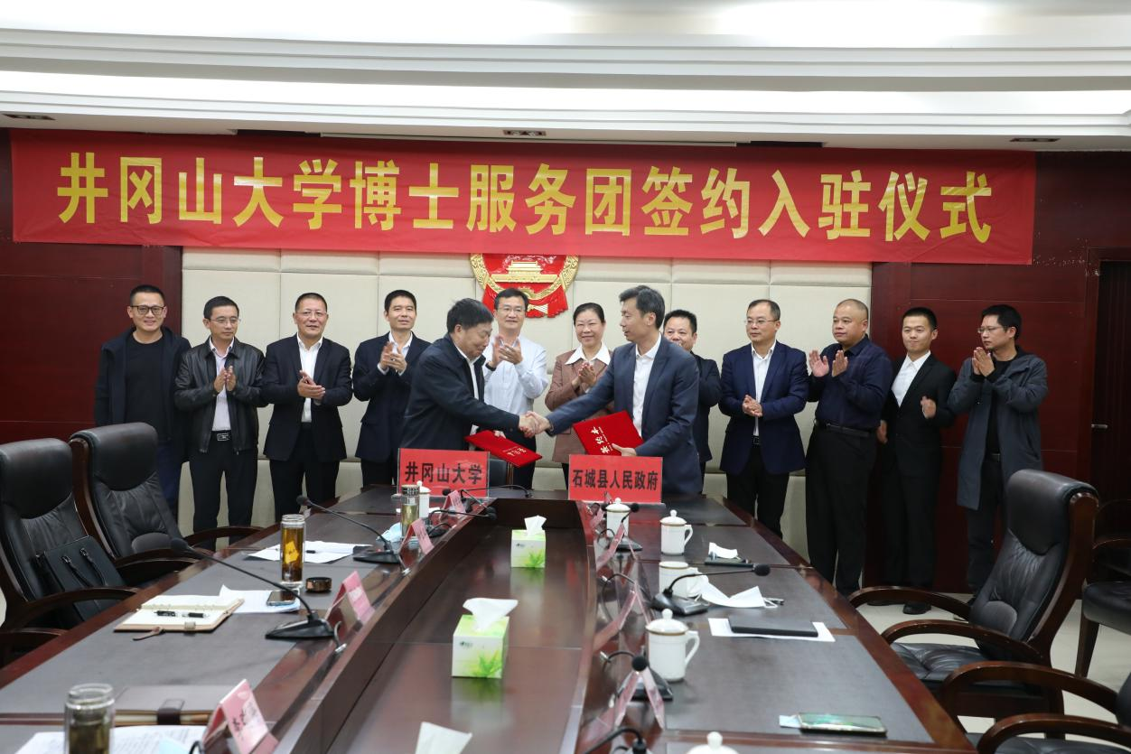 10月19日,井冈山大学博士服务团入驻石城县工业园管委会博士工作站签约仪式在石城县举行。井冈山大学党委书记胡春晓,党委常委、副校长吕玉华,石城县委副书记、县长张小川和县领导钟本祥、李明海、宁雄、黄建伟及井冈山大学化学化工学院负责人和入站博士,石城县各乡镇和相关部门、企业主要负责人出席签约仪式,吕玉华和常务副县长李明海分别代表双方在协议书上签字,县长张小川为入驻博士颁发聘书。石城县委常委、组织部长钟本祥主持签约仪式。