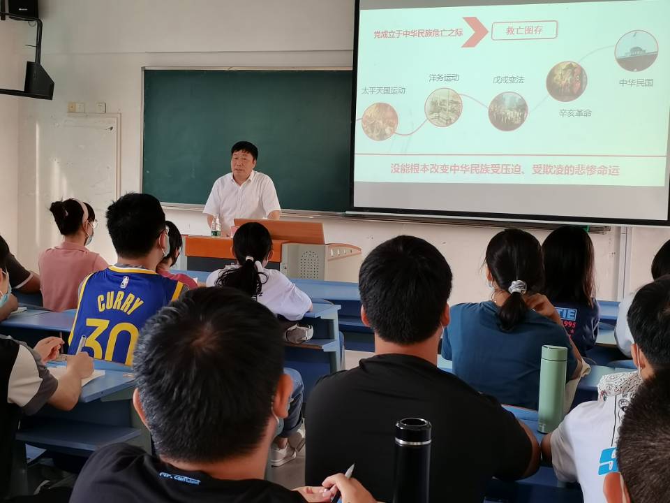 百年征程波澜壮阔、百年初心历久弥坚。9月17日上午,校党委常委、副校长吕玉华受邀为我院新生讲授“开学第一课”。吕玉华以《铸就百年辉煌 书写千秋伟业——庆祝中国共产党成立100周年》为题,从中国共产党百年伟大成就、中国共产党百年奋斗经验与启示两个方面,对“五个庄严宣告”、伟大的建党精神、以史为鉴、开创未来“九个必须”进行了系统解读,对习近平总书记在庆祝中国共产党成立100周年大会上的重要讲话精神进行了专题宣讲。学院党政领导班子成员和21级材化2班40名同学共同聆听了讲座。