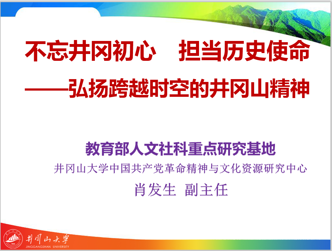 会上,教育部人文社会科学重点研究基地“井冈山大学中国共产党革命精神与文化资源研究中心”副主任、井冈山大学井冈山研究中心主任肖发生以《不忘井冈初心,担当历史使命——弘扬跨越时空的井冈山精神》为题,为大家带来了一堂深刻和生动的党史学习教育专题党课。