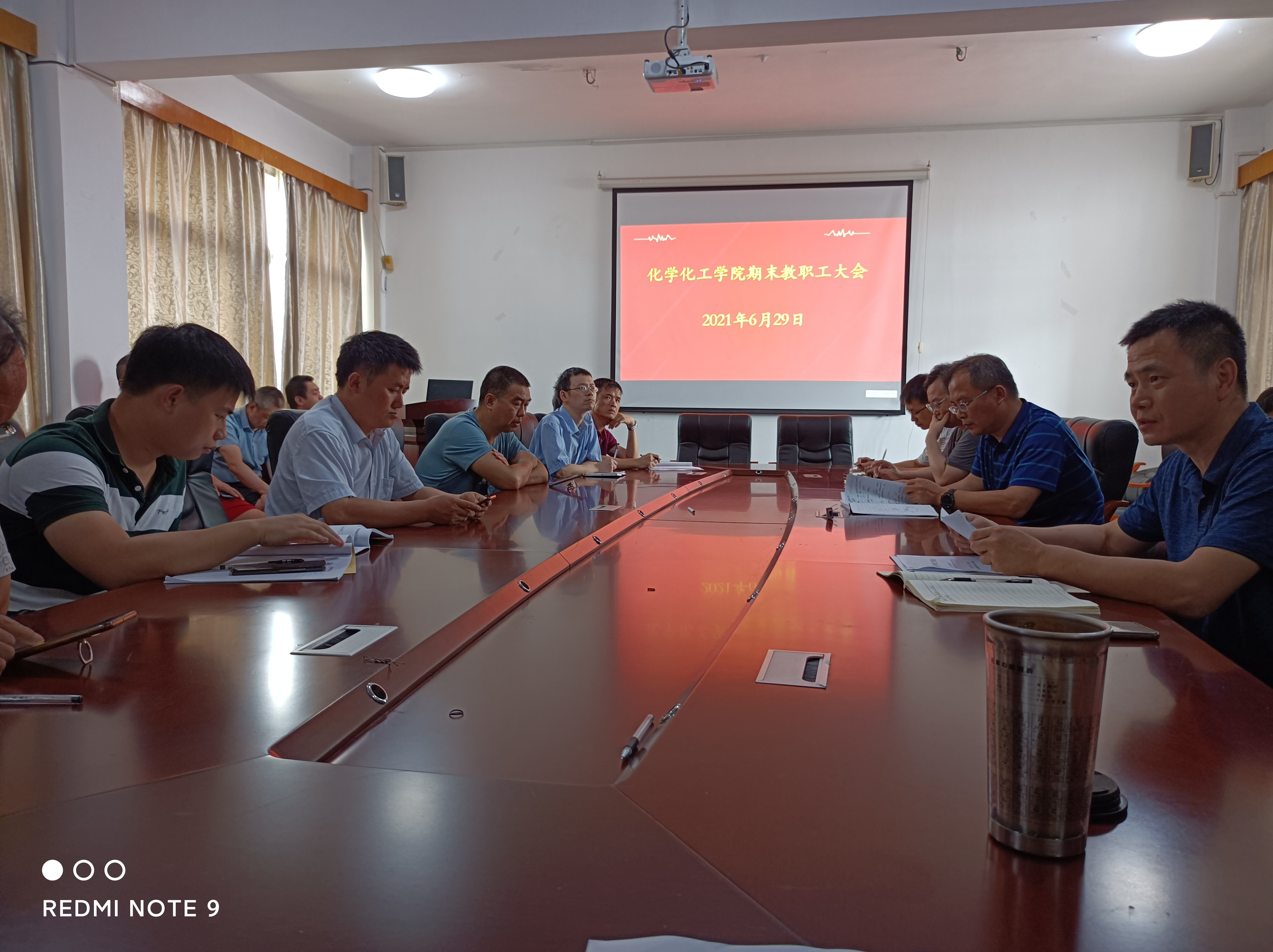 2021年6月29日下午,我院召开期末教职工大会,传达学习上级会议精神,总结通报2021上半年学院工作,并布置下一阶段重点工作。学院党委书记康云峰、院长隋岩、党委副书记刘志勇、应化研究所副所长陈文通、副院长张定娃、刘诚出席会议,会议由隋岩主持。
