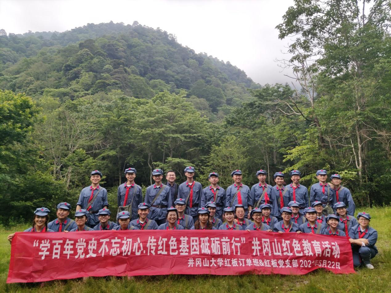 “红板订单班”是我院对校企“双主体育人”合作办学育人模式的有效探索。为充分发挥“双主体育人”的思想政治教育优势,增强党史学习教育效果,传承红色基因,赓续红色血脉,汲取奋进力量,5月22日,井冈山大学“红板订单班”师生与红板(江西)有限公司党支部党员在井冈山荆竹山拓展基地开展了以“学百年党史不忘初心·传红色基因砥砺前行”为主题的红色拓展活动。