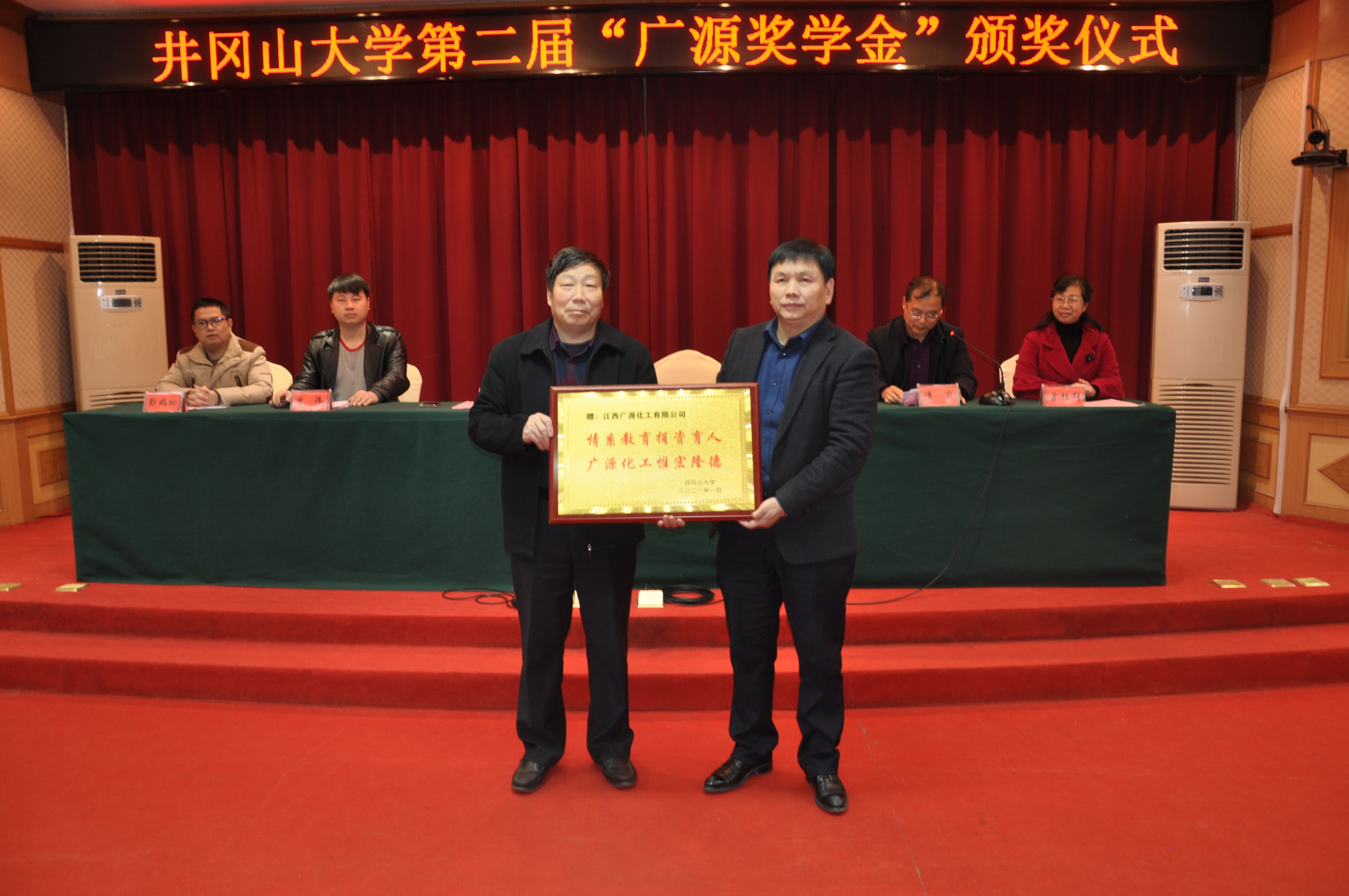 1月15日,学校举行第二届“广源奖学金”发放仪式,江西广源化工有限责任公司党委书记、副董事长邹检生和校党委常委、副校长吕玉华出席仪式并讲话,吕玉华向邹检生先生赠送捐资荣誉锦牌。“广源奖学金”定向捐赠给化学化工学院品学兼优、家庭困难的30名大学生,各有10名同学每人获5000元、3000元、2000元奖学金。