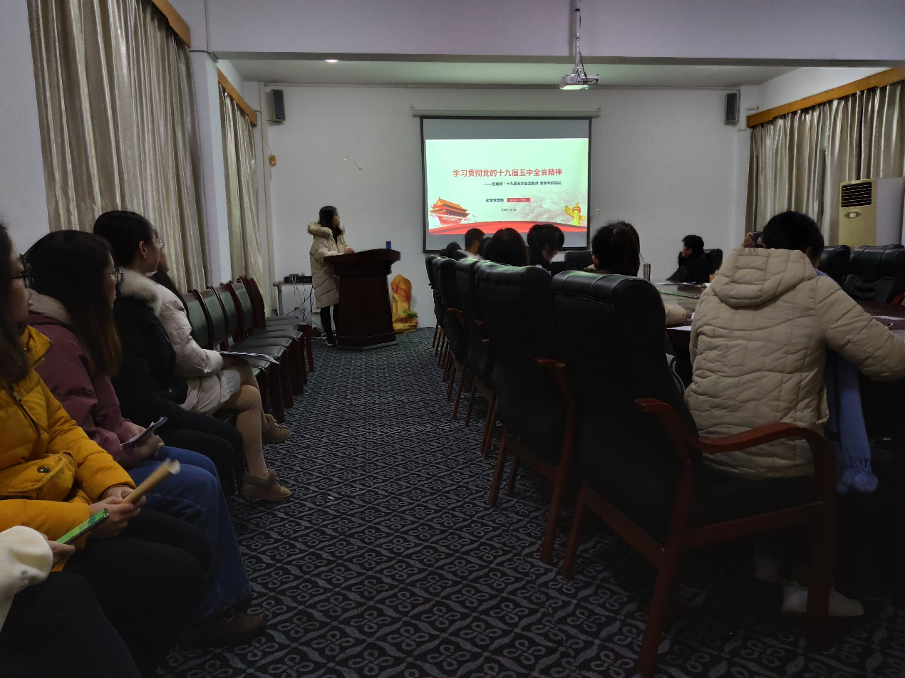 2020年12月15日,化学专业党支部召开专题学习会,深入学习党的十九届五中全会精神。学院党委书记康云峰、化学党支部教职工党员及全体学生党员和入党积极分子参加了学习会。会议由化学党支部书记王玮主持。