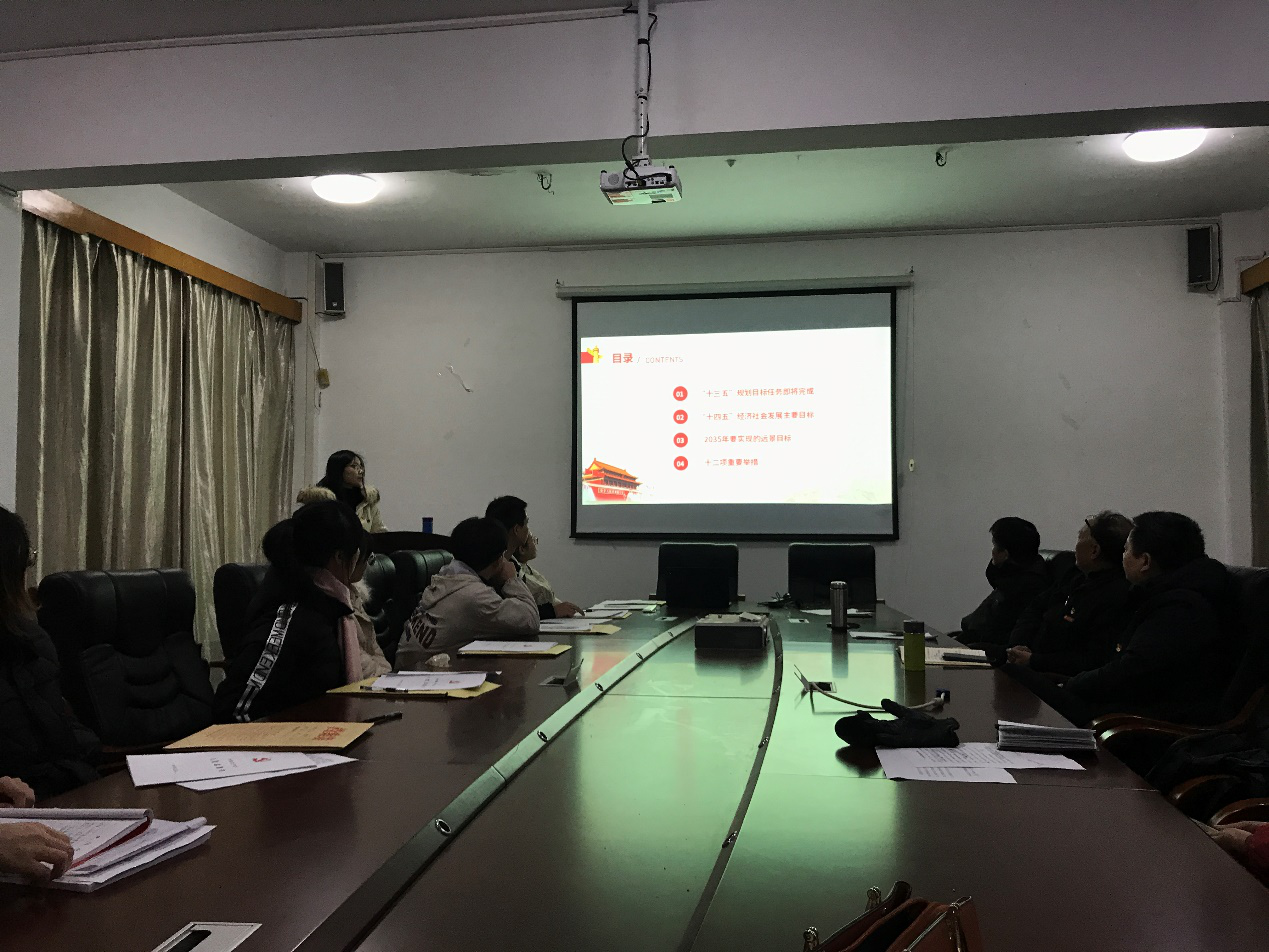 会议首先由王玮领学了《中国共产党第十九届中央委员会第五次全体会议公报》,她主要从“十三五”规划目标任务即将完成、“十四五”经济社会发展主要目标、2035年要实现的愿景目标、十二项重要举措等方面进行了详细地介绍。之后,与会党员对党的十九届五中全会内容进行了充分讨论。一致认为,党的十九届五中全会,是在统筹中华民族伟大复兴的战略全局和世界百年未有之大变局的关键时刻,在“两个一百年”历史交汇点上召开的一次重要会议,举世瞩目,意义重大,影响深远。全会审议通过的《中共中央关于制定国民经济和社会发展第十四个五年规划和二〇三五年远景目标的建议》擘画了“十四五”乃至二〇三五年我国发展的宏伟蓝图,开启了全面建设社会主义现代化国家新征程,是今后五年乃至更长时期我国经济社会发展的行动指南。