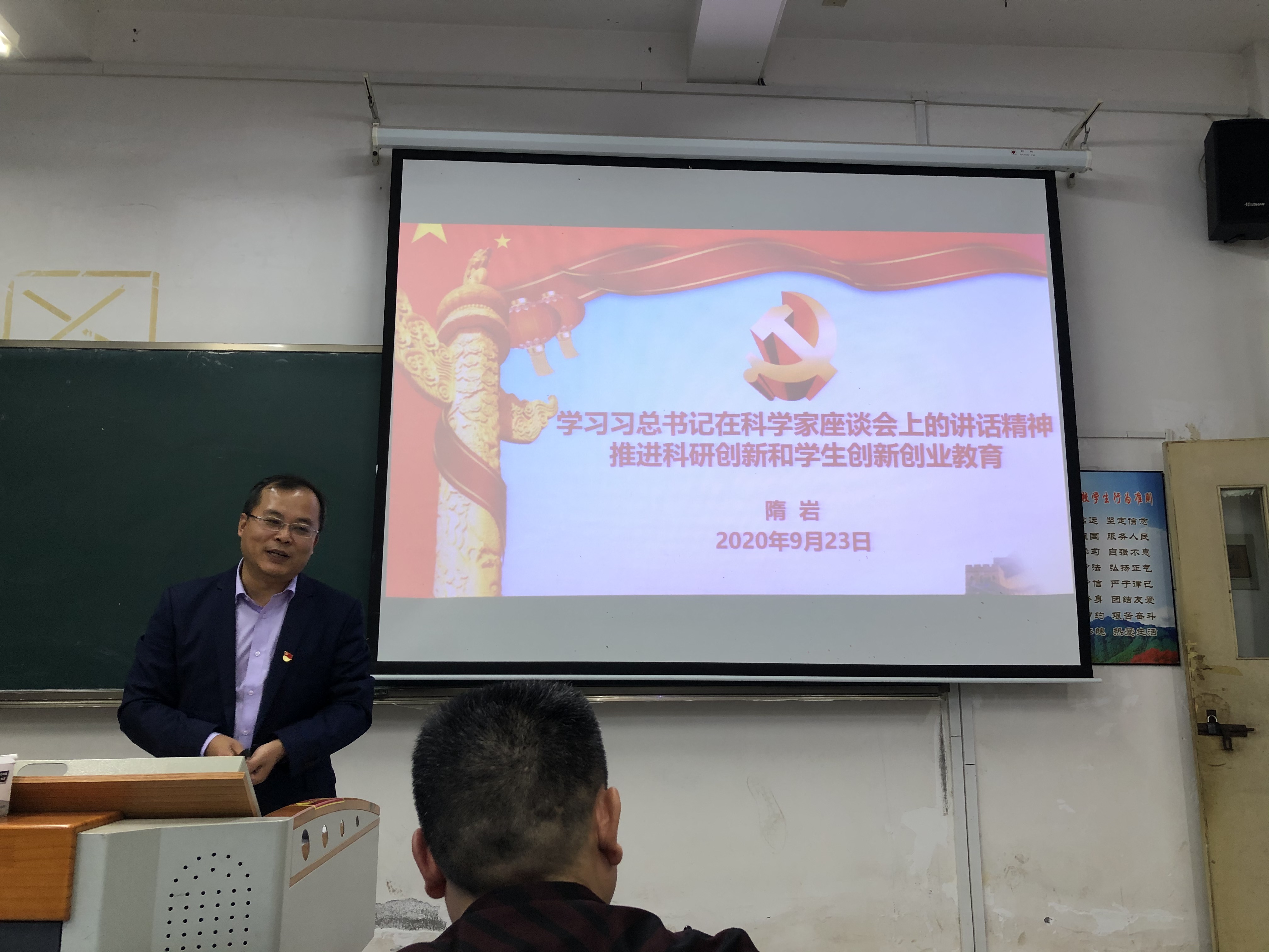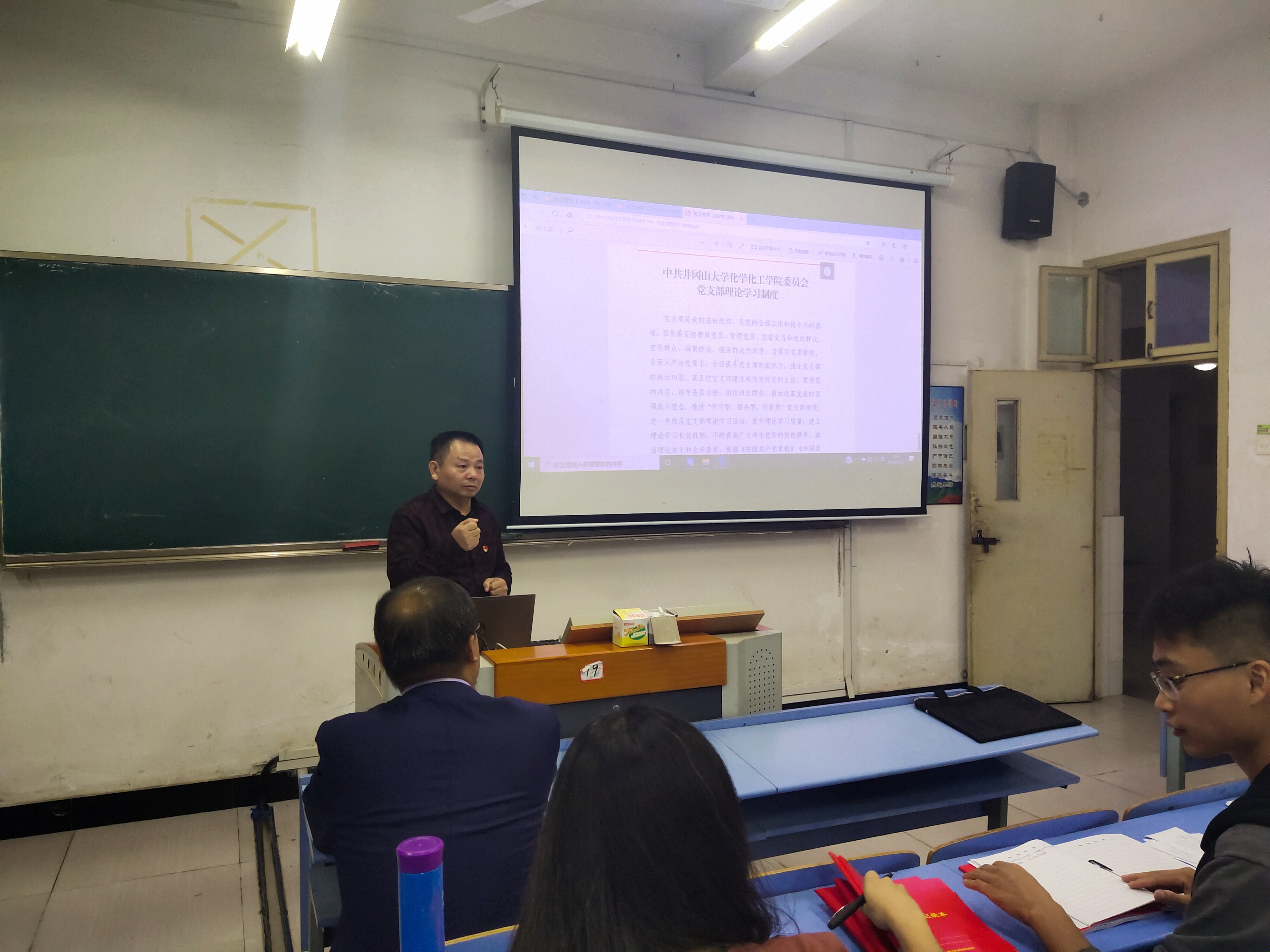 各支部选举工作结束后全体党员集中,学院党委书记康云峰带领学院全体师生党员集中学习了《中共井冈山大学化学化工学院委员会党支部理论学习制度》(化工党字〔2020〕8号文件),对各党支部如何坚持好“三会一课”制度、开展好主题党日活动、创评“映山红”党支部打造党建工作特色品牌进行了培训指导,并根据上级组织要求对中央、省委、省教育工委、学校党委的党费收支情况进行了通报。随后,全体师生党员聆听了学院党委副书记、院长隋岩同志作的题为《学习习近平在科学家座谈会上的讲话精神,推进科研创新与学生创新创业教育》的专题党课。