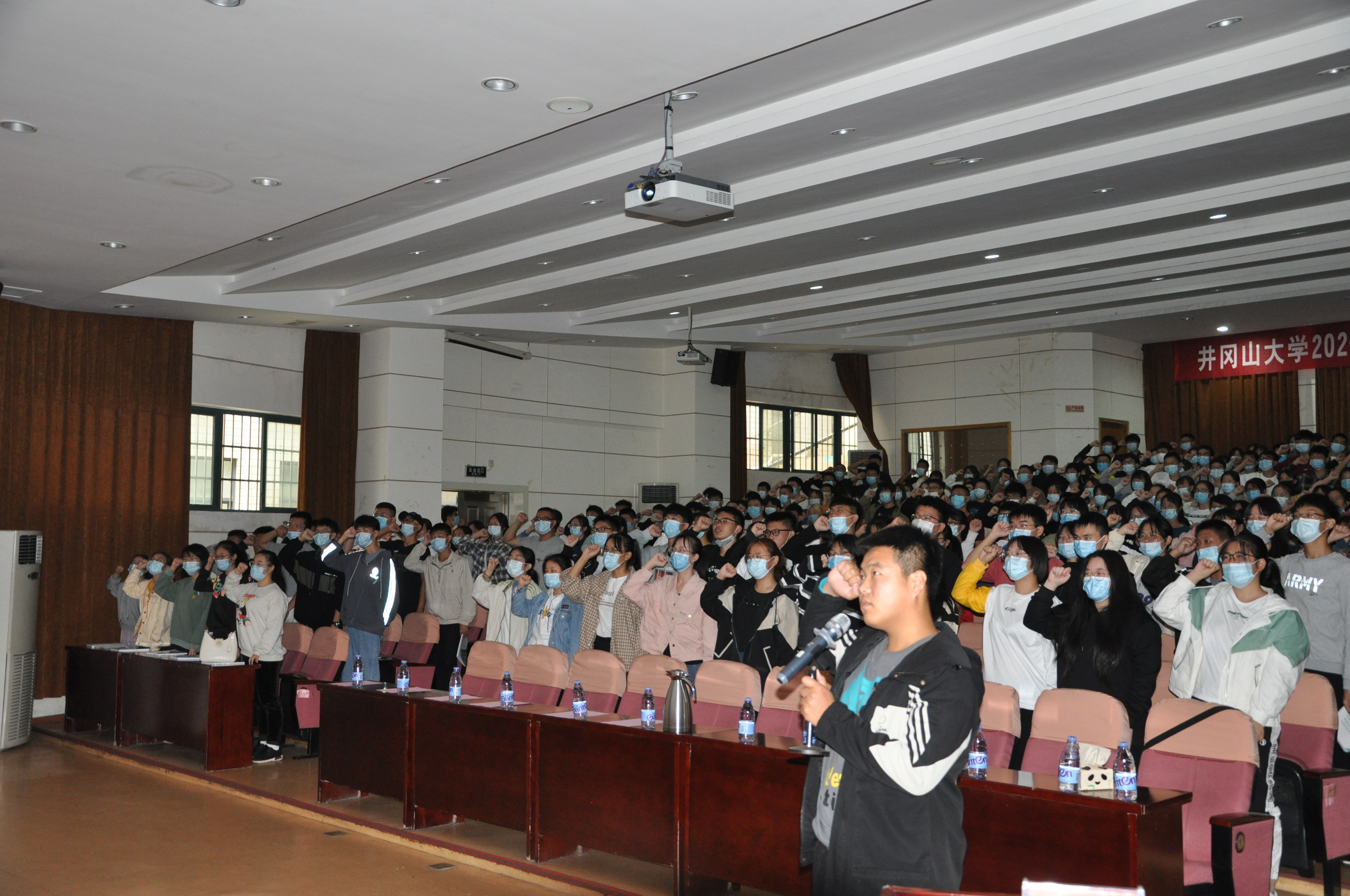 党委书记康云峰在致辞中寄语全体新同学要大力弘扬和传承跨越时空的井冈山精神,立志高远,不负韶华,勤奋学习,愉快生活,在新的人生起点上昂首踏上新的征程。