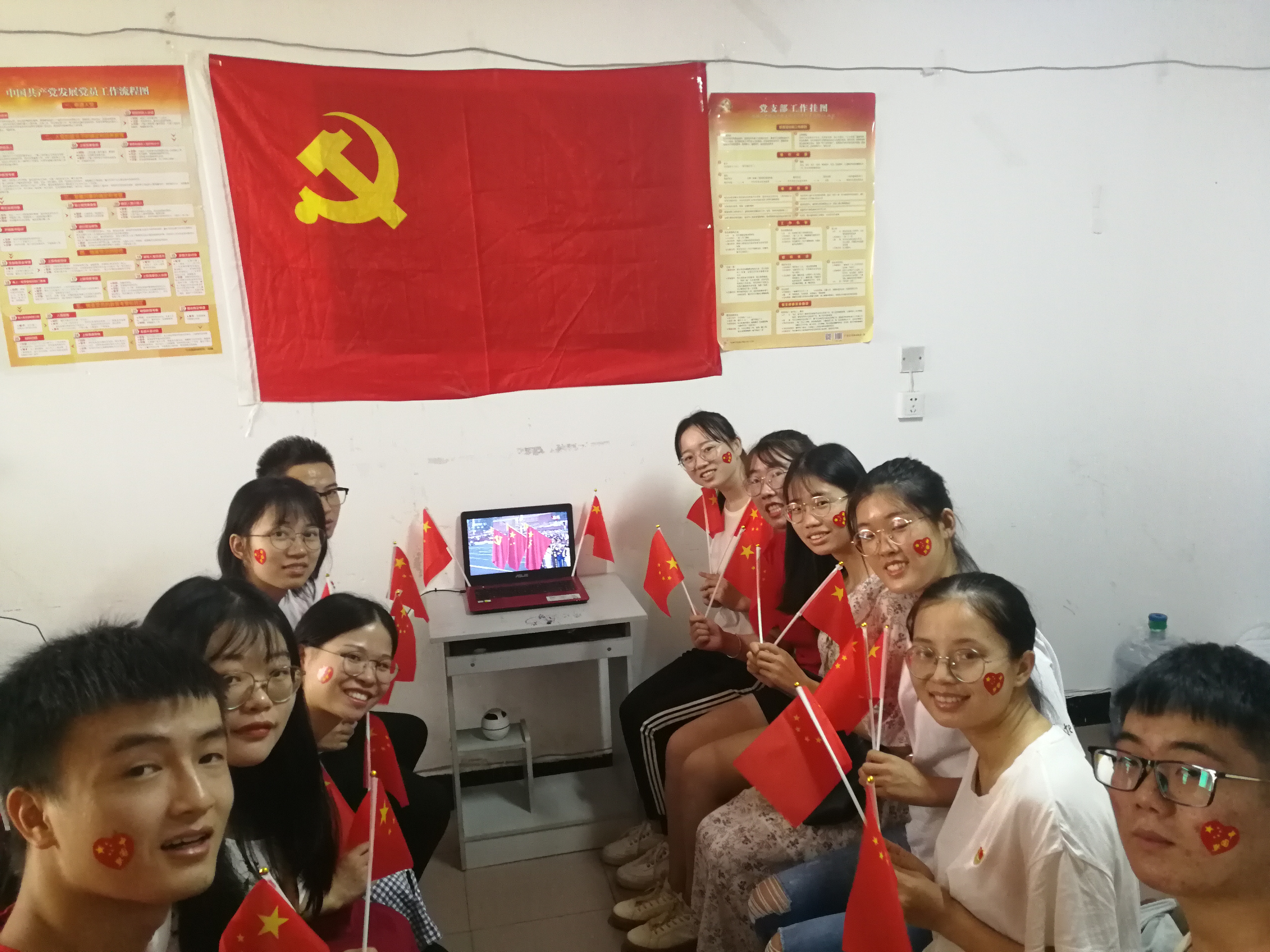 为增强师生党员的责任感和使命感,落实“不忘初心、牢记使命”主题教育要求,假期留在学校学生党员分别在17栋104和107寝室集中观看中华人民共和国成立70周年庆典。其他党员通过手机、电视、“学习强国”APP等形式收听收看。