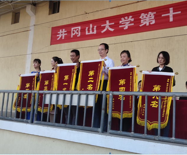 10月18日下午,井冈山大学第十三届田径运动会圆满落幕。我院10名教工代表学院参加了教工组的比赛项目,经过三天的激烈角逐,我院取得了教工组团体总分第四名的好成绩,打破了我院教职工在校运会上教工组团体总分的记录,充分展示了我院教职工团结奋进、敢于争先的精神风貌。
