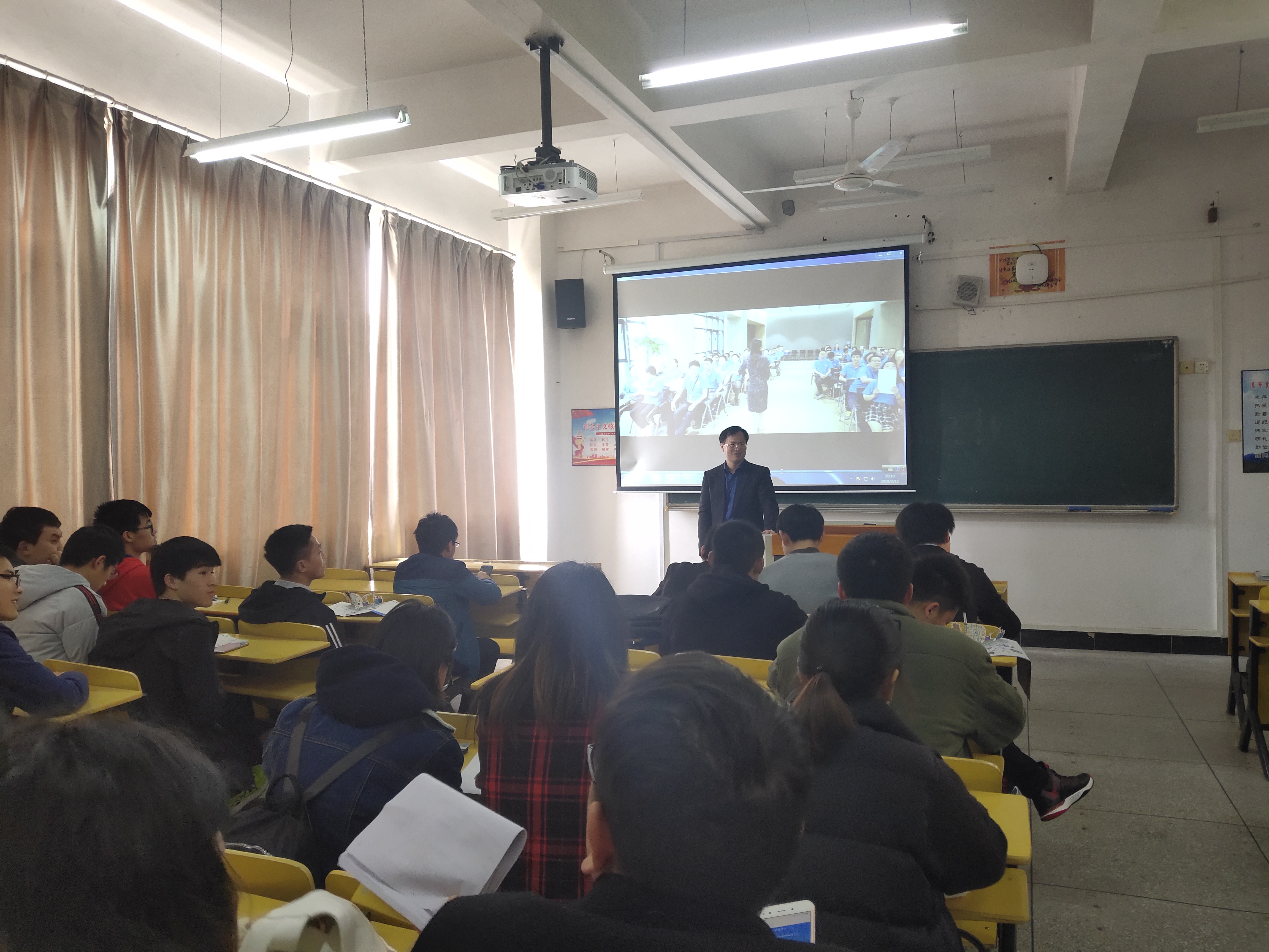 首先,肖主任介绍了公司的基本情况、工作环境、发展前景、员工福利待遇、招聘岗位及其应聘条件,然后,肖主任与参加应聘同学进行了交流互动。最后,有数位同学提交了简历,参加了现场面试,等待录用通知。
