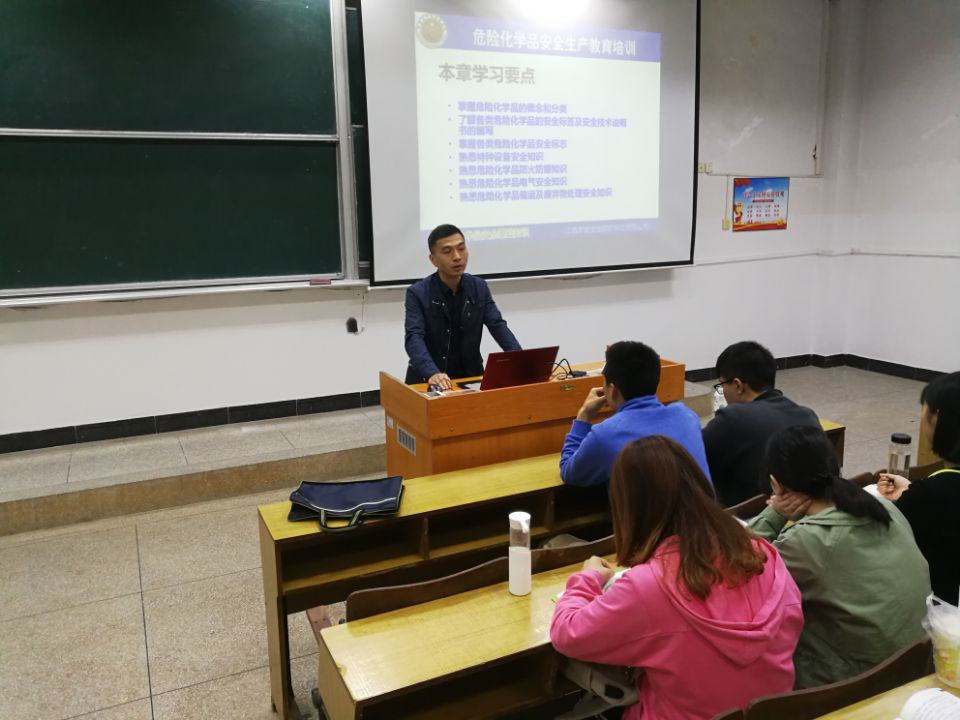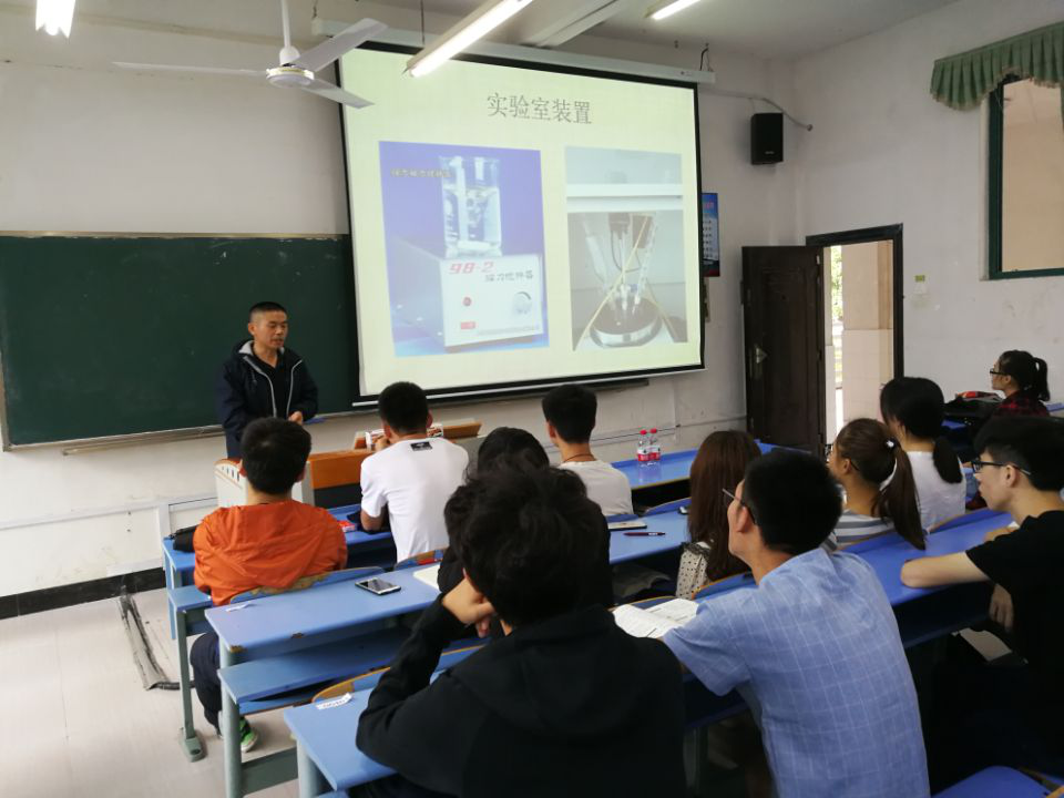 为贯彻落实应用化学专业理论与实践相结合的培养方案,使应用化学专业的工业见习落到实处,2018.4.22化工学院特邀:吉安市安监局陈富祥主任来校为我院学生开展企业安全知识讲座,江西邦浦药业杨华平总工来校为我院学生开展化工企业常见设备基本构造及其用处的讲解,吉安海洲医药肖芳政总经理助理来校为我院学生开展化工工艺流程的介绍。通过上述三位专家的讲解,学生对下企业工业见习安全预防、设备构造及功用、一般化工产品生产工艺有了初步的印象,为下企业见习奠定了良好的基础。这种教学模式,得到了学生的一致认可。