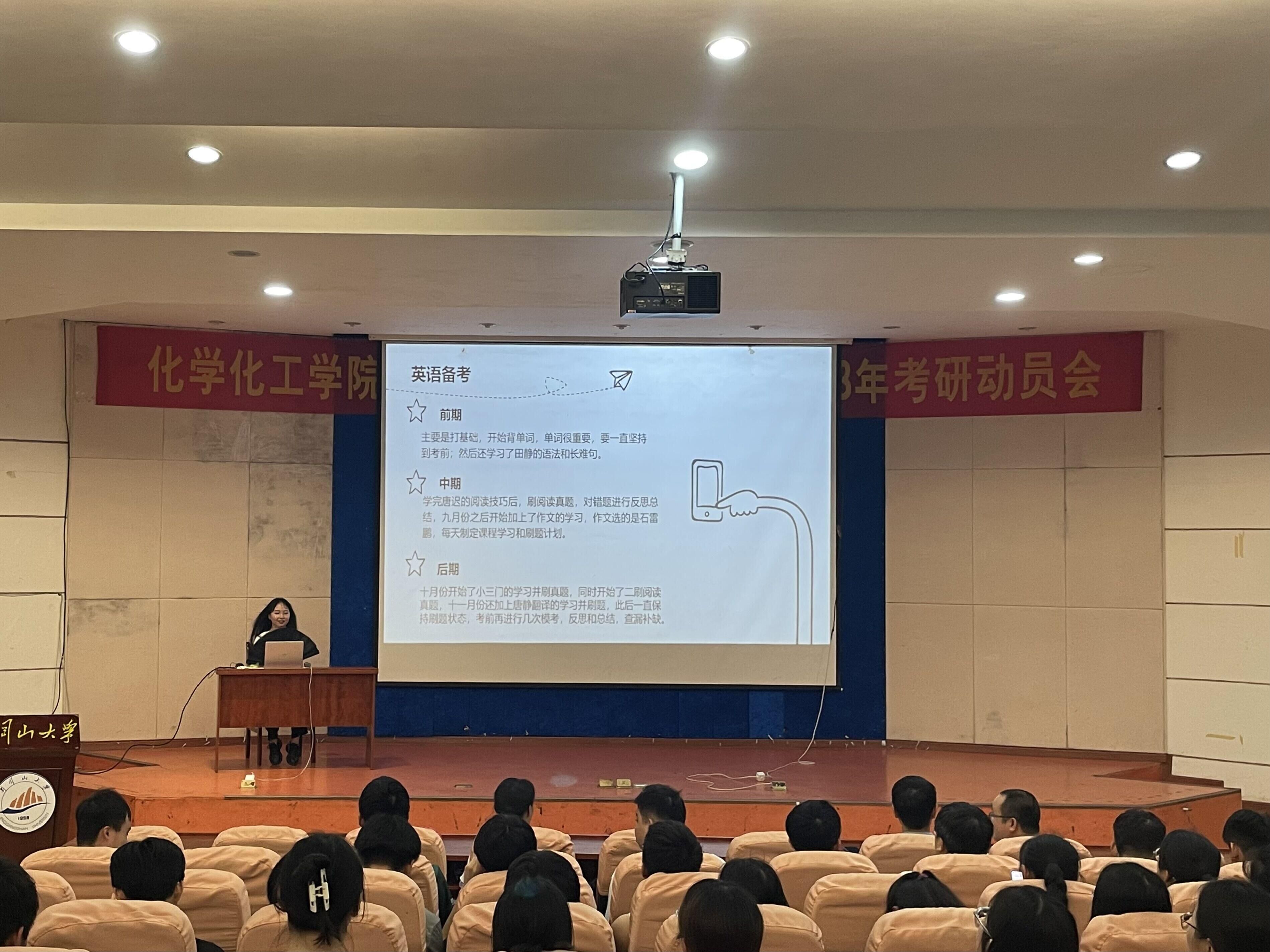 此次交流会学院特别邀请到了2023年成功上岸的五位同学作为主讲人与同学们交流,五位主讲人均就自己的备考、调剂、复试过程与经历进行了分享,为2020级学生提供了宝贵的备考经验。