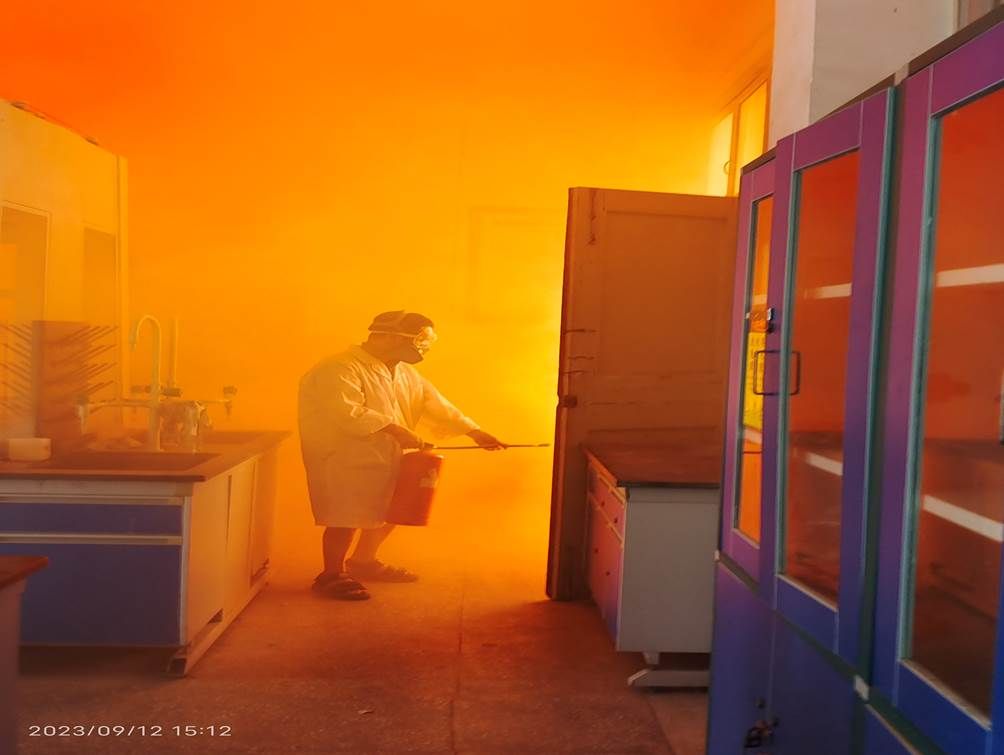 2023年9月12日,学校在3栋化学化工实验教学楼举行消防安全演练活动,校党委常委、副校长刘利民出席并讲话,教务处、保卫处、化学化工学院负责人、化学化工学院全体实验室工作人员、部分学生等50余人参加了演练活动。