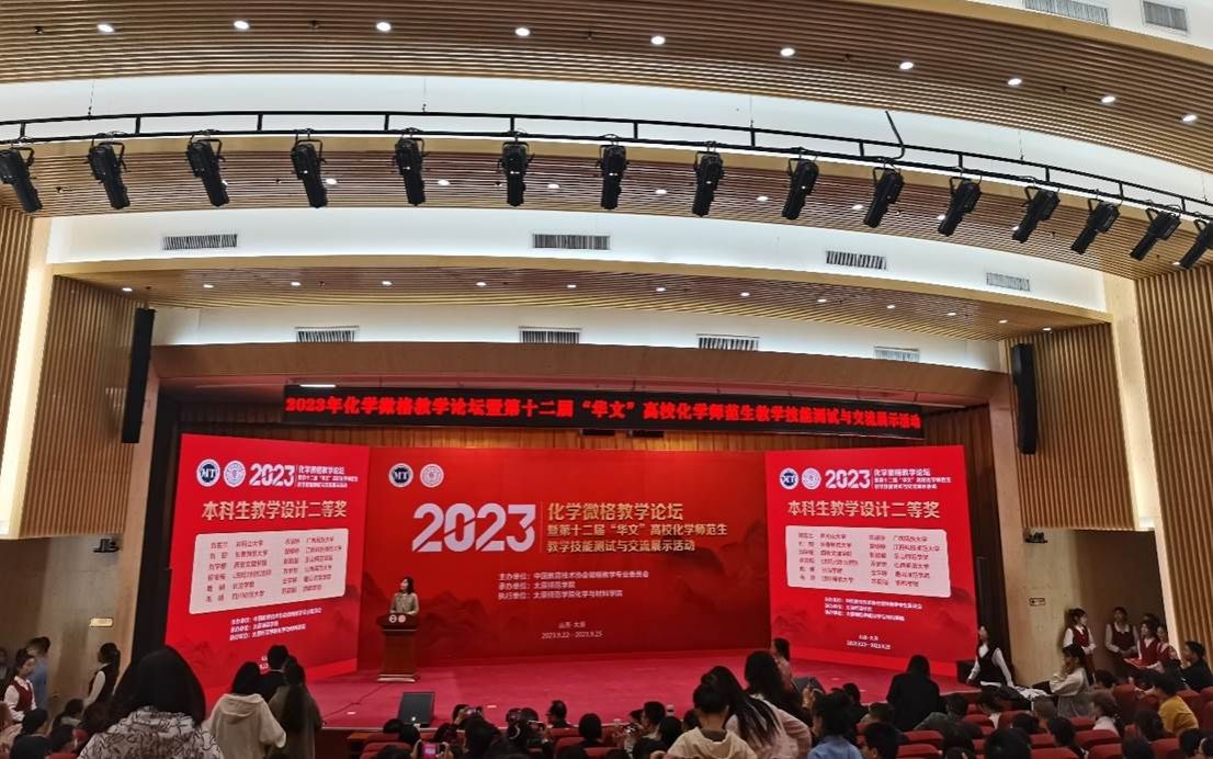 2023年9月22日至9月25日,由中国教育技术协会微格教学专业委员会主办的2023年化学微格教学论坛暨第十二届“华文”高校化学师范生教学技能测试与交流展示活动在山西太原师范学院举办。本次大赛汇集了来自全国55所师范院校的近300名化学师范生。