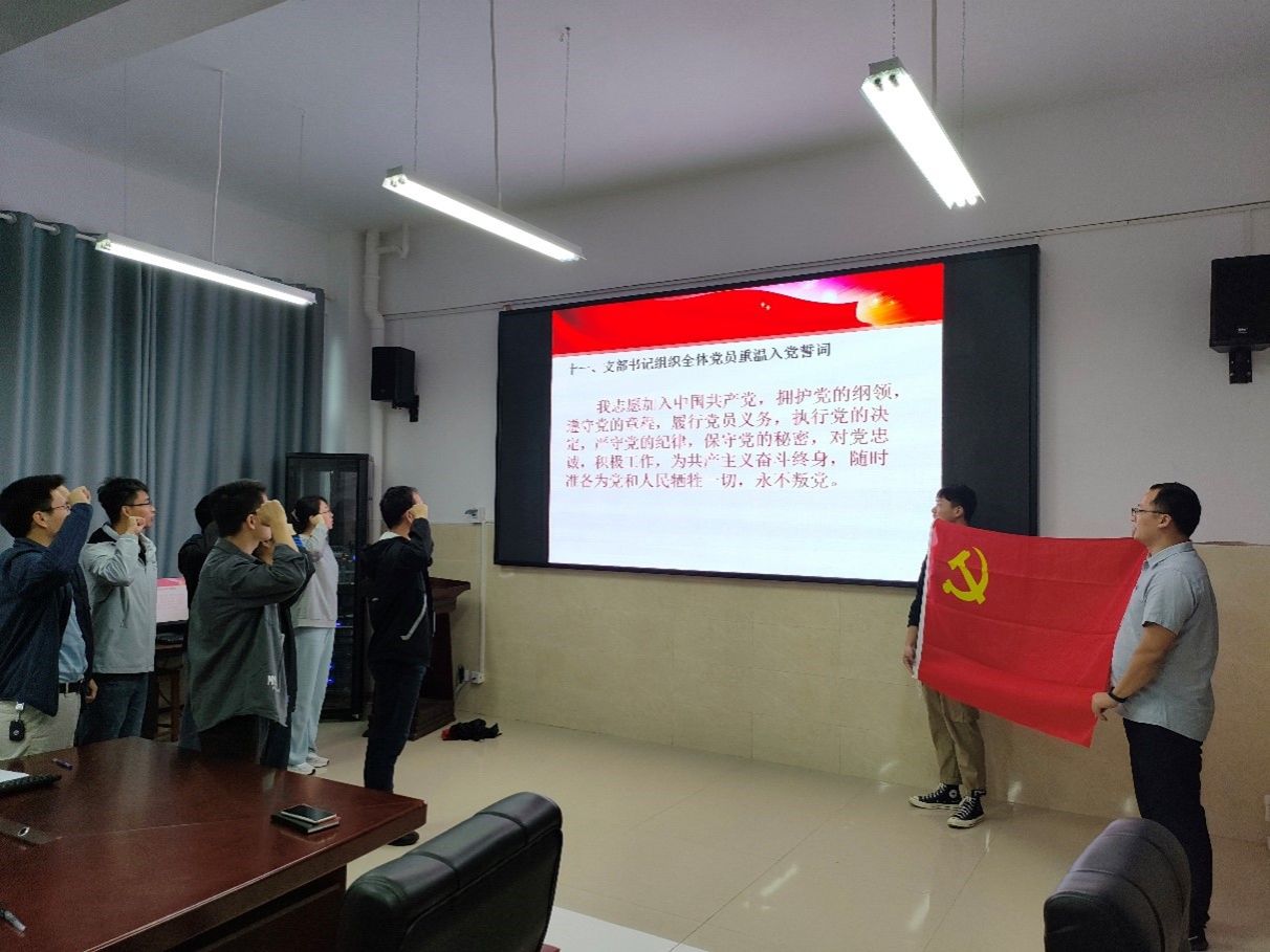 最后,在新任党支部书记戴胜平的带领下全体党员举行了庄严的重温入党誓词仪式和党旗交接仪式。(文/图:赵海兵,审核:戴胜平、丁小歌)