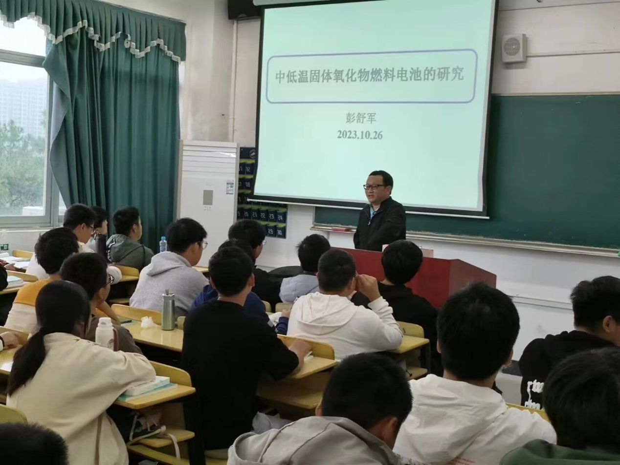 2023年10月26日,化学化工学院彭舒军博士在9栋503作了题为“中低温固体氧化物燃料电池的研究”的学术报告。我院师生共计七十余人参加了此次报告会。