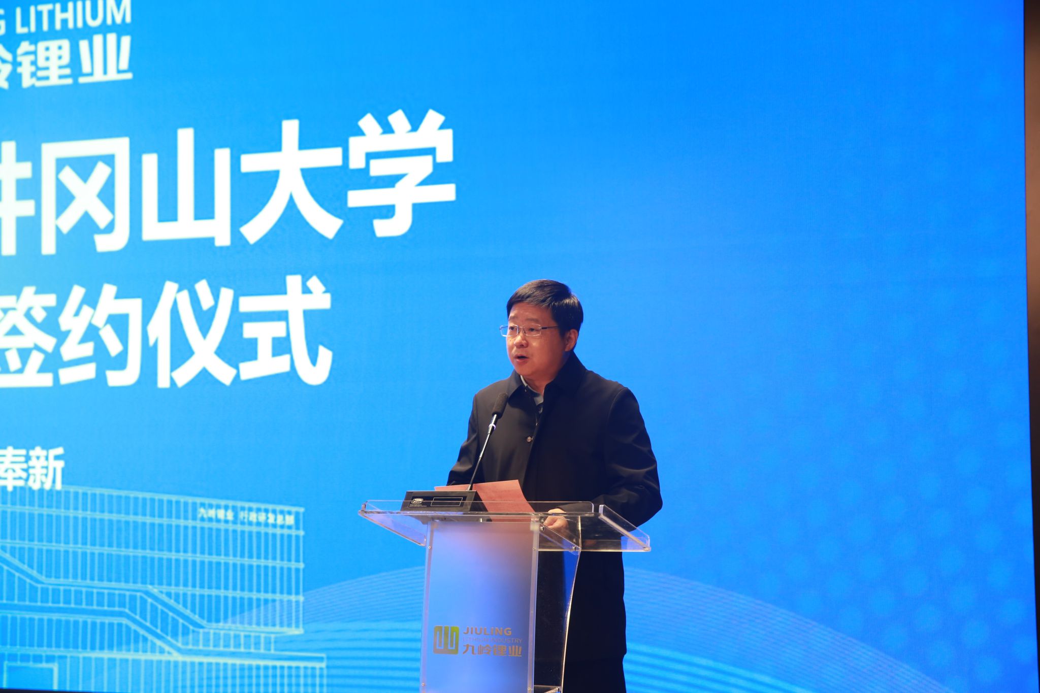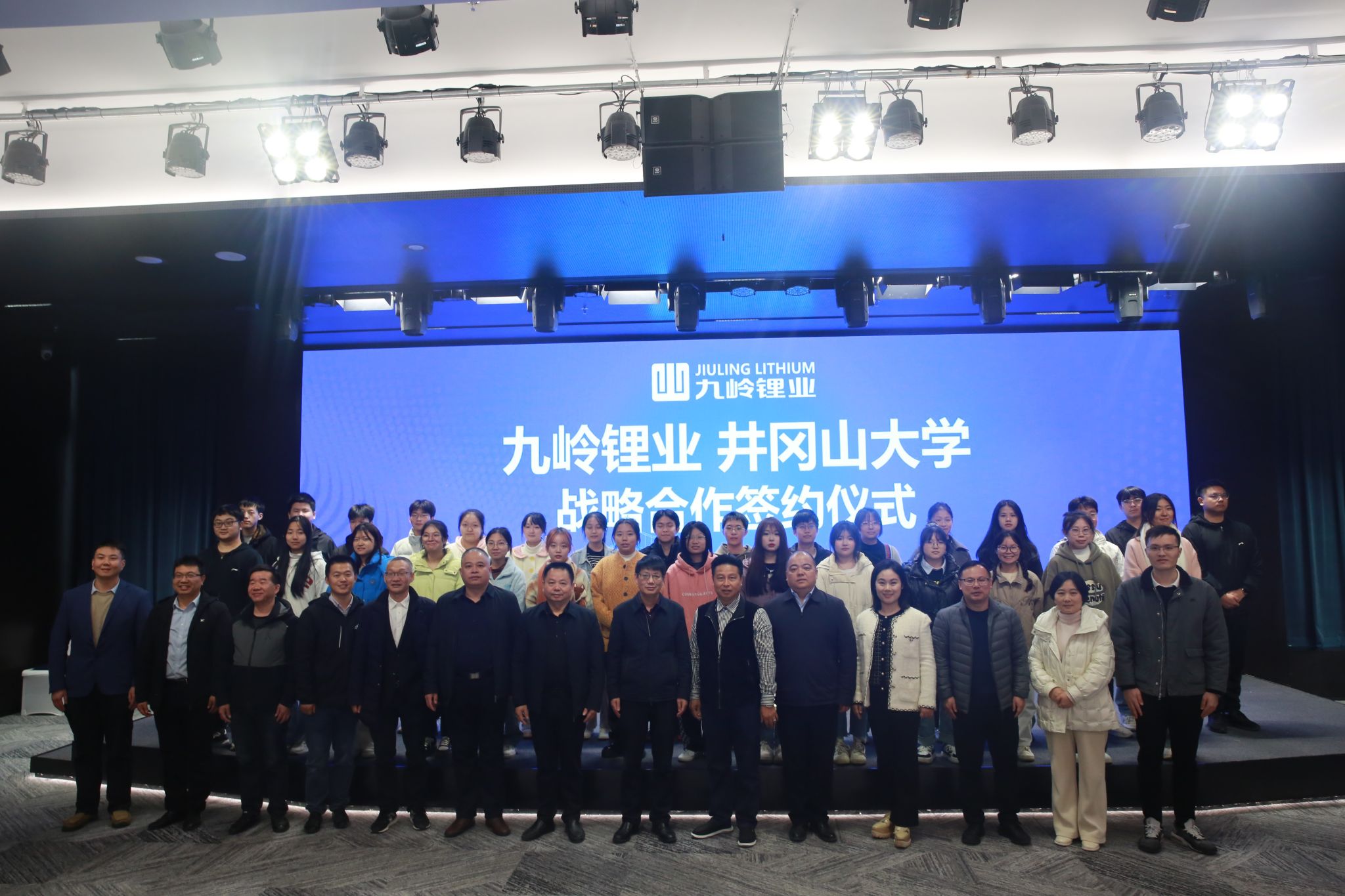 11月30日上午,井冈山大学与九岭锂业校企战略合作签约暨新材料现代产业学院九岭锂业微专业班开班仪式在江西九岭锂业股份有限公司行政研发总部举行。井冈山大学党委副书记、校长罗旭彪,化学化工学院党委书记康云峰、院长陈文通,奉新县县长喻军、副县长陈永昌、县科技局党组书记熊志红、组织部副部长唐莘,九岭锂业董事长魏绪春、副总经理潘蕊,化学化工学院部分老师和微专业班29名同学参加了仪式。