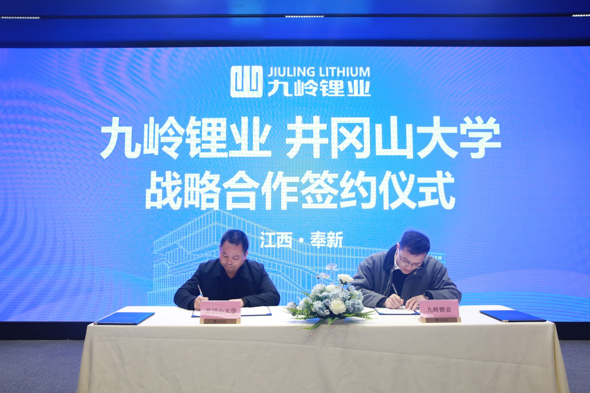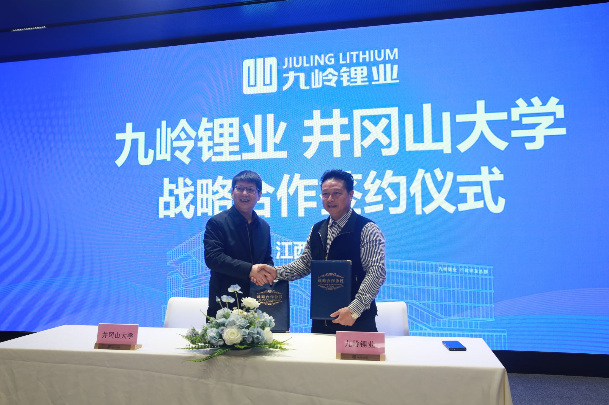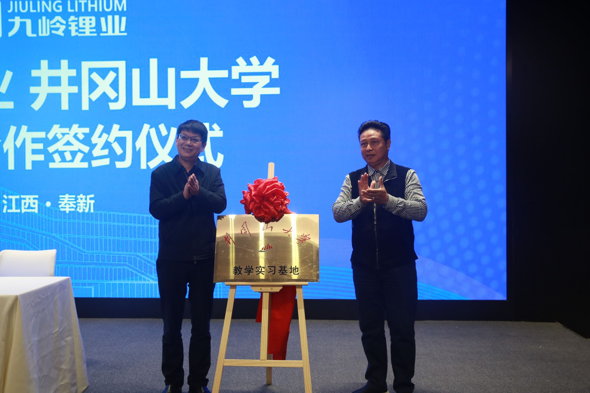 罗旭彪和魏绪春签订了“实习就业基地合作协议书”,并共同为井冈山大学教学实习基地揭牌;康云峰和九岭锂业人力资源部部长邓亮亮签订了“九岭锂业微专业班合作协议书”。