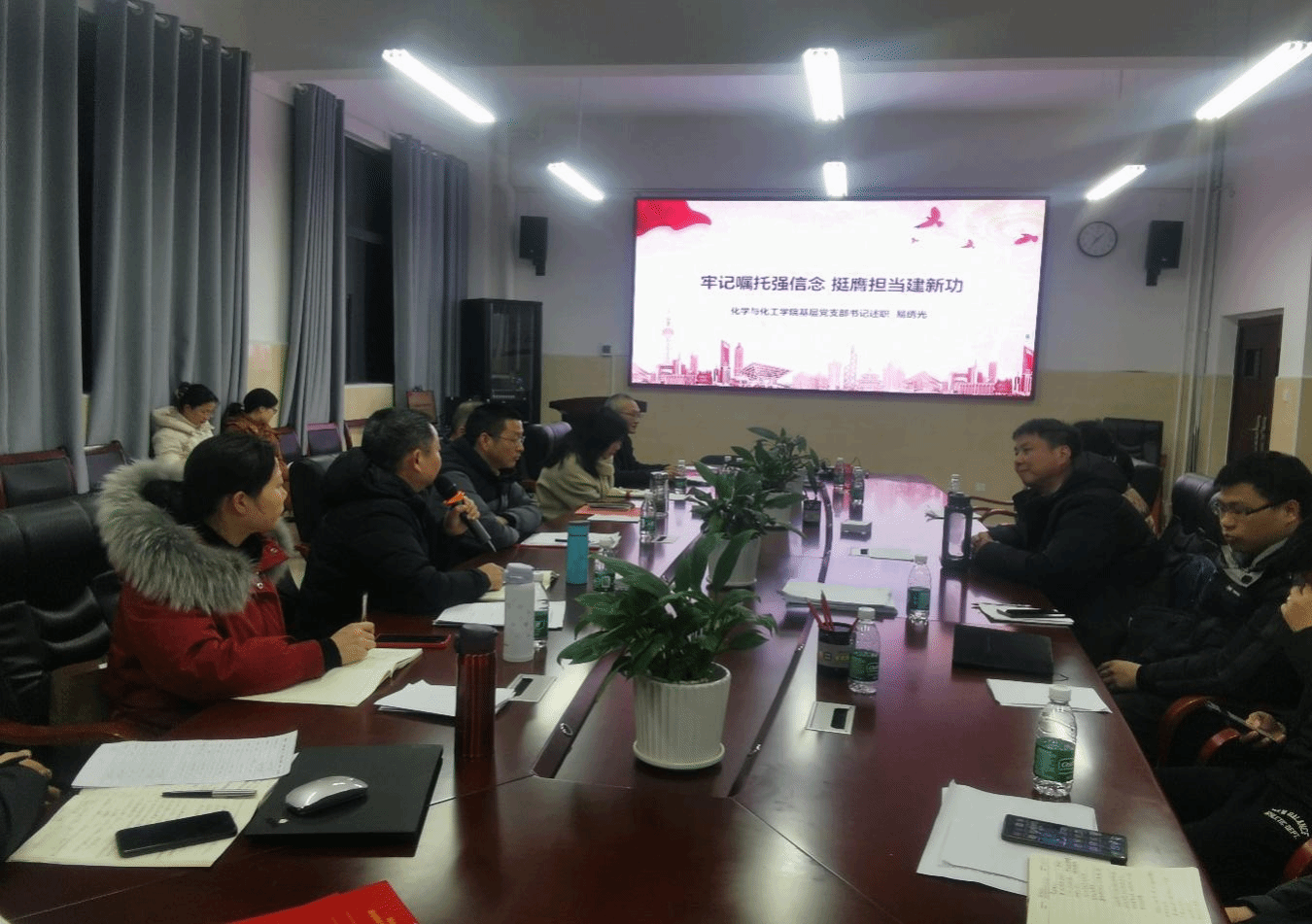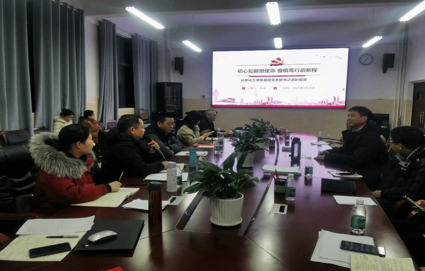 述职结束后,学院党委书记康云峰对各党支部书记的述职情况进行了点评,肯定了各党支部过去一年取得成绩,同时要求各党支部要重视解决基层党组织存在的问题,提出了加强各党支部建设的具体要求。要求既要加强教学与科研,又要在创建党建品牌特色亮点上开动脑筋;要充分挖掘和利用化学专业课程思政元素,扎实推进“党建+课程思政”等党建品牌建设;要主动参加各类学术会议,带领和指导学生参加挑战杯、互联网+等创新创业大赛;要充分发挥党支部的战斗堡垒作用和党员的先锋模范作用,以创新的理念谋划工作,以务实的举措破解难题,以过硬的作风推动落实,不断开创学院基层党建工作新局面。(文、图:王先平 审核:张华、康云峰)