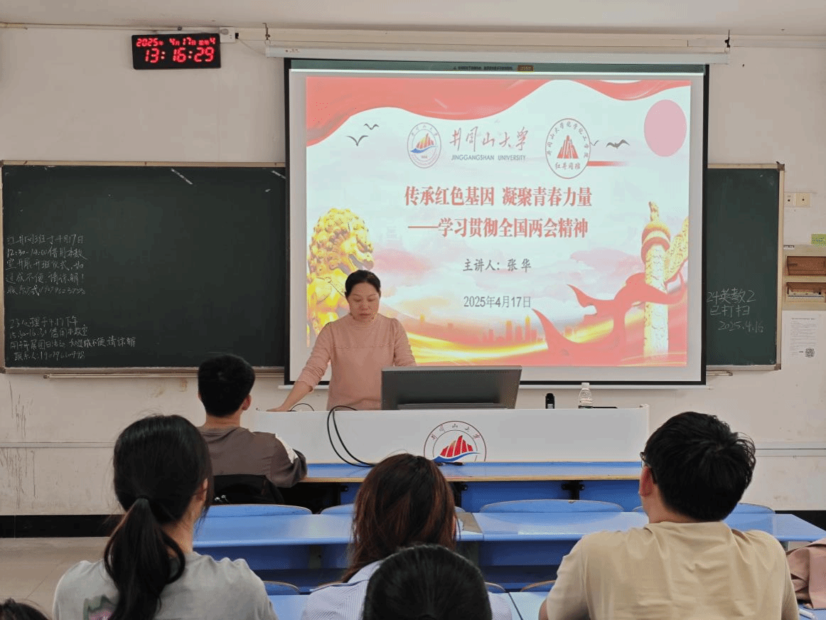 为深入学习贯彻2025年全国两会精神,引导青年学生准确把握时代脉搏,坚定理想信念,4月17日,化学化工学院在9-207教室为“红井冈班”学员开展了全国两会精神宣讲活动,学院党委副书记张华作专题宣讲。