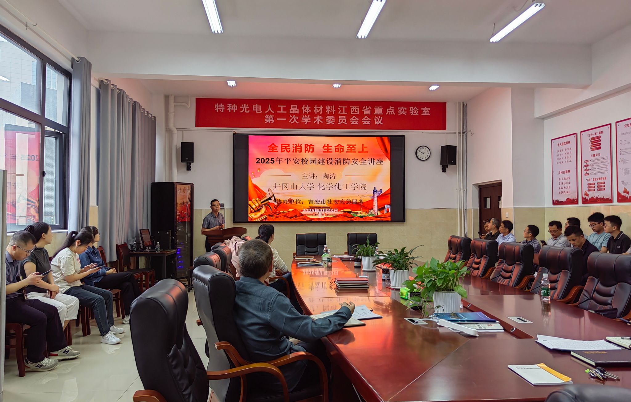 为进一步增强师生消防安全意识,提升实验室安全管理水平,筑牢校园安全防线,4月23日,化学化工学院举办2025年平安校园建设消防安全讲座。本次讲座由江西省消安安全服务有限公司主任讲师陶涛主讲,全院教师参加学习。
