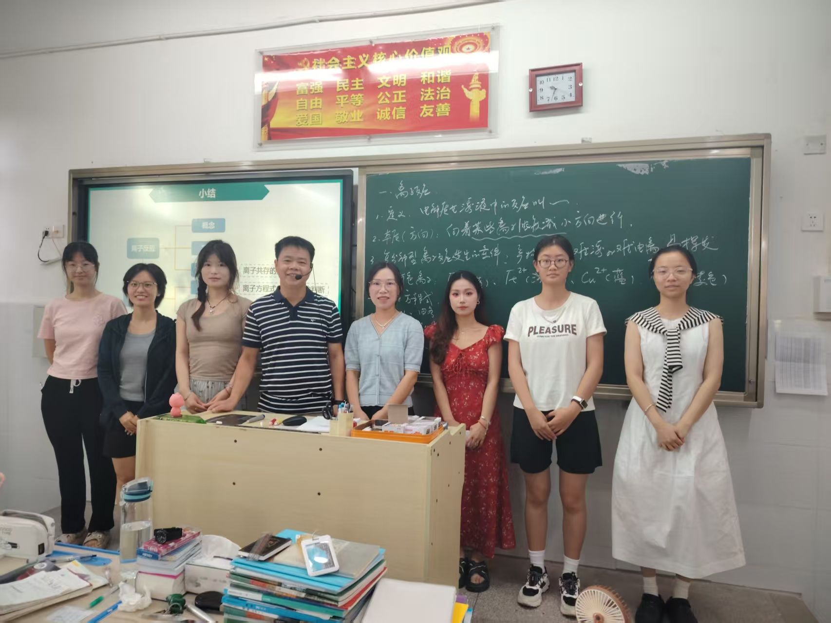 2025年9月15日,井冈山大学化学化工学院化学师范生在学院学科法教师候林丽老师的带领下,走进吉安市第一中学高一(四)班课堂,现场观摩该校骨干教师颜涛老师主讲的“离子反应”公开课,近距离学习中学化学优质课堂的教学模式与实践技巧。
