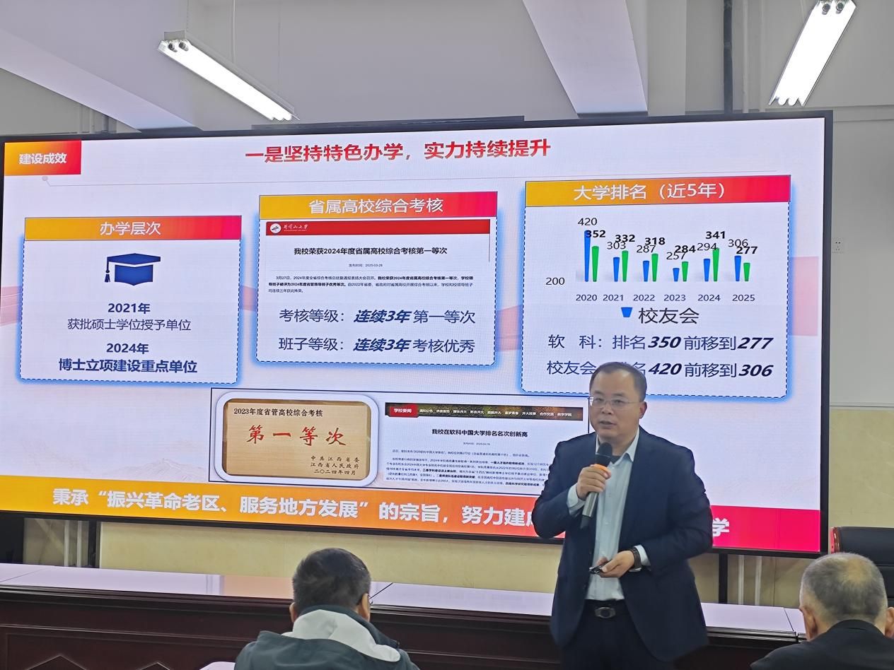 隋岩指出,井冈山大学“十四五”期间发展迅速,党的建设和事业发展都取得了长足进步,“十五五”期间特别关键,学校要切实把握新一轮科技革命和产业变革深入发展,国家深入推进教育强国、科技强国、人才强国建设的大势,努力在提升人才培养质量、增强原始创新能力、优化学科专业结构、深化产教融合等方面实现更大突破。