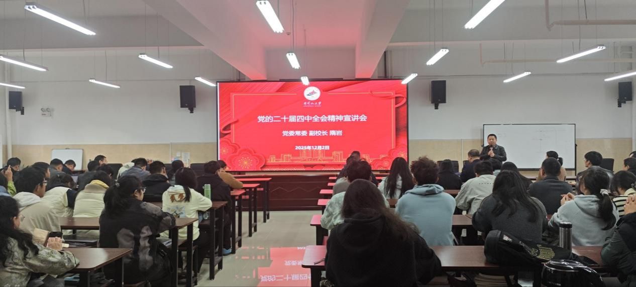 为深入学习贯彻党的二十届四中全会精神,引导师生将全会部署转化为推动学校高质量发展和个人成长的实际行动,12月2日上午,校党委常委、副校长隋岩在化学化工学院201多功能厅为化学化工学院和政法学院全体教师及学生代表共计200余人作党的二十届四中全会精神专题宣讲报告。宣讲会由化学化工学院党委书记康云峰主持。